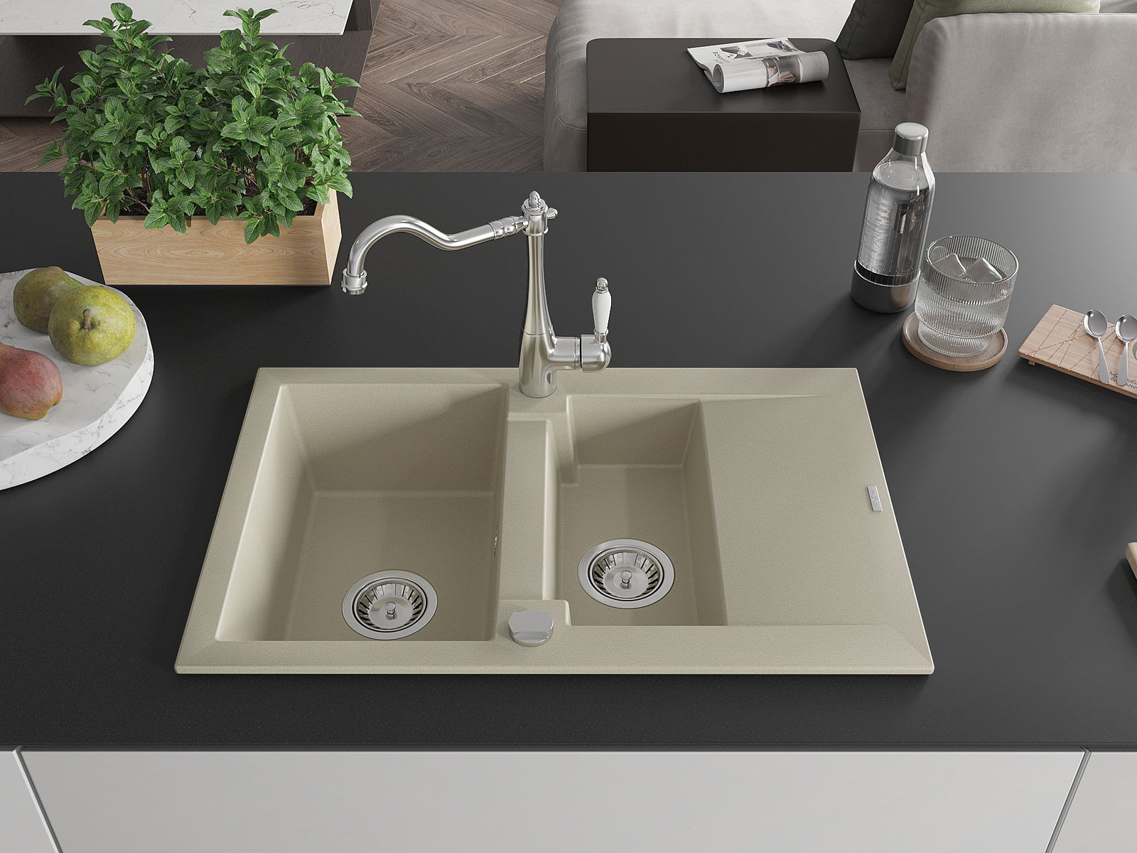 Kriauklės paviršius yra atsparūs dėmėms ir spalvos pasikeitimui, dėl kurio lengva valyti ir ilgą laiką išlaikyti savo spalvą. Estetinis ir praktiškai papildantis kiekvieną virtuvę.