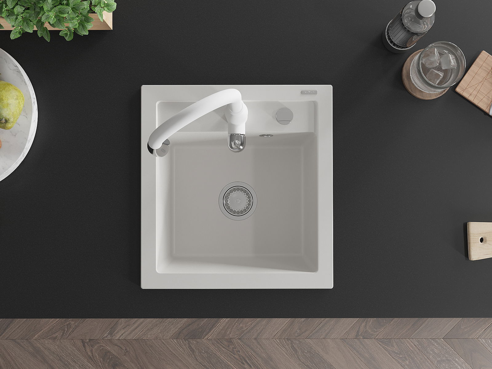 Mexen Vito vienos kameros granito plautuvė su virtuvės maišytuvu Savita, balta - 6503-20-672601-20
