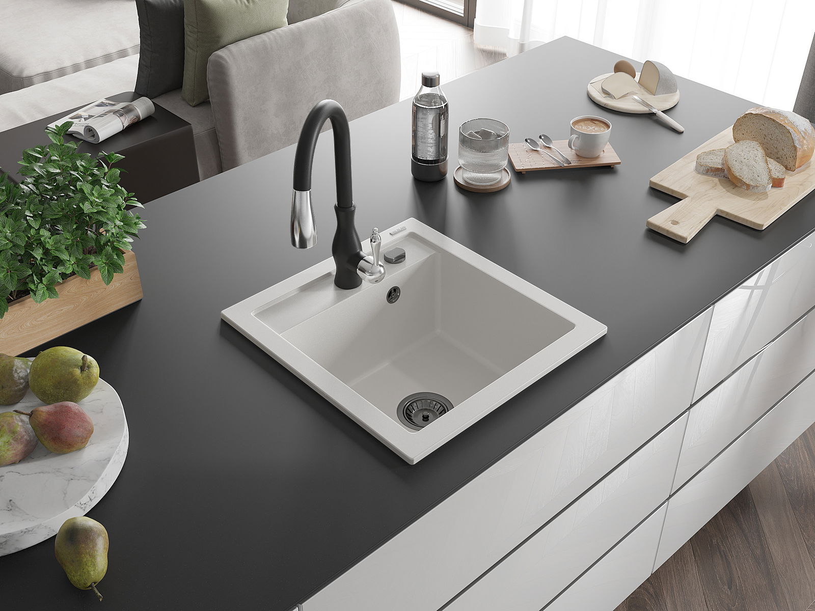 Kriauklės paviršius yra atsparūs dėmėms ir spalvos pasikeitimui, dėl kurio lengva valyti ir ilgą laiką išlaikyti savo spalvą. Estetinis ir praktiškai papildantis kiekvieną virtuvę.