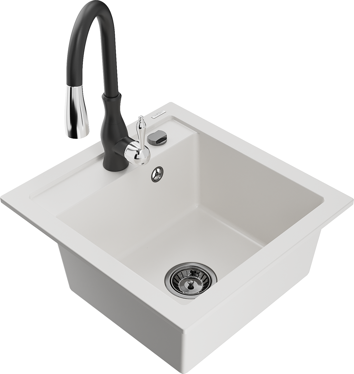 Mexen Vito granitinė vienos kameros plautuvė su virtuviniu maišytuvu Savita, balta - 6503-20-672601-70