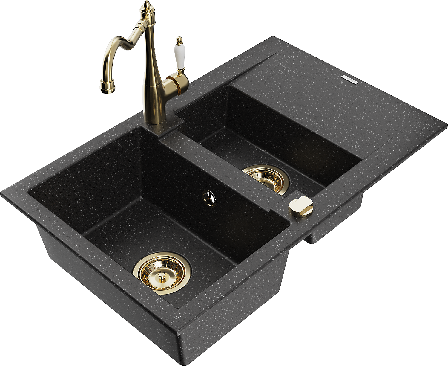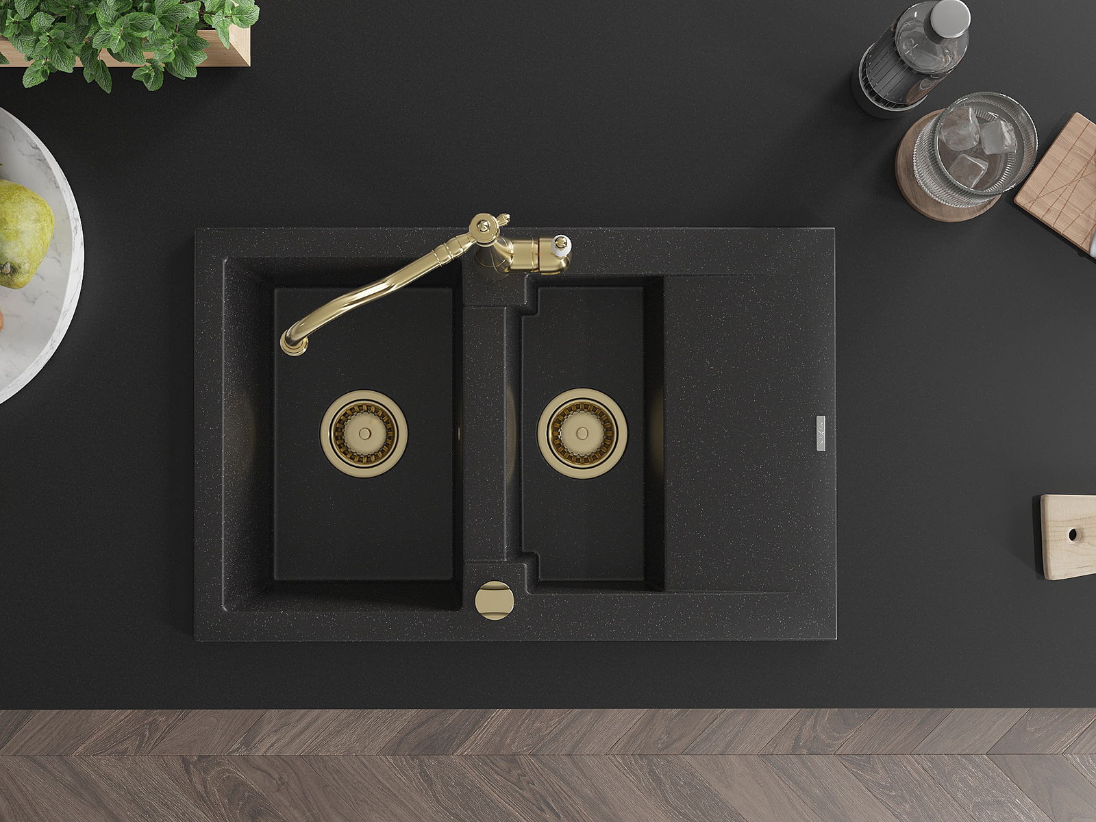 Mexen Gaspar granitinė 1,5 sekcijų kriauklė su nutekamu ir Carla juodo/sidabrinio metalo virtuviniu maišytuvu