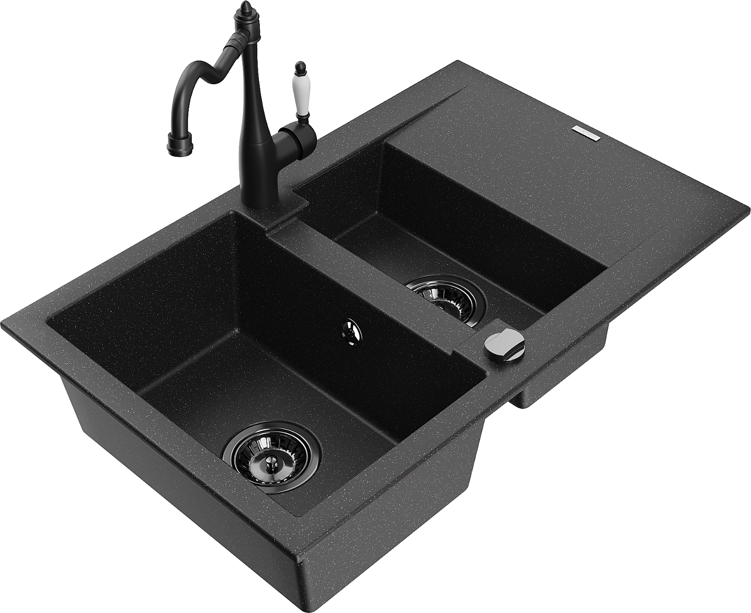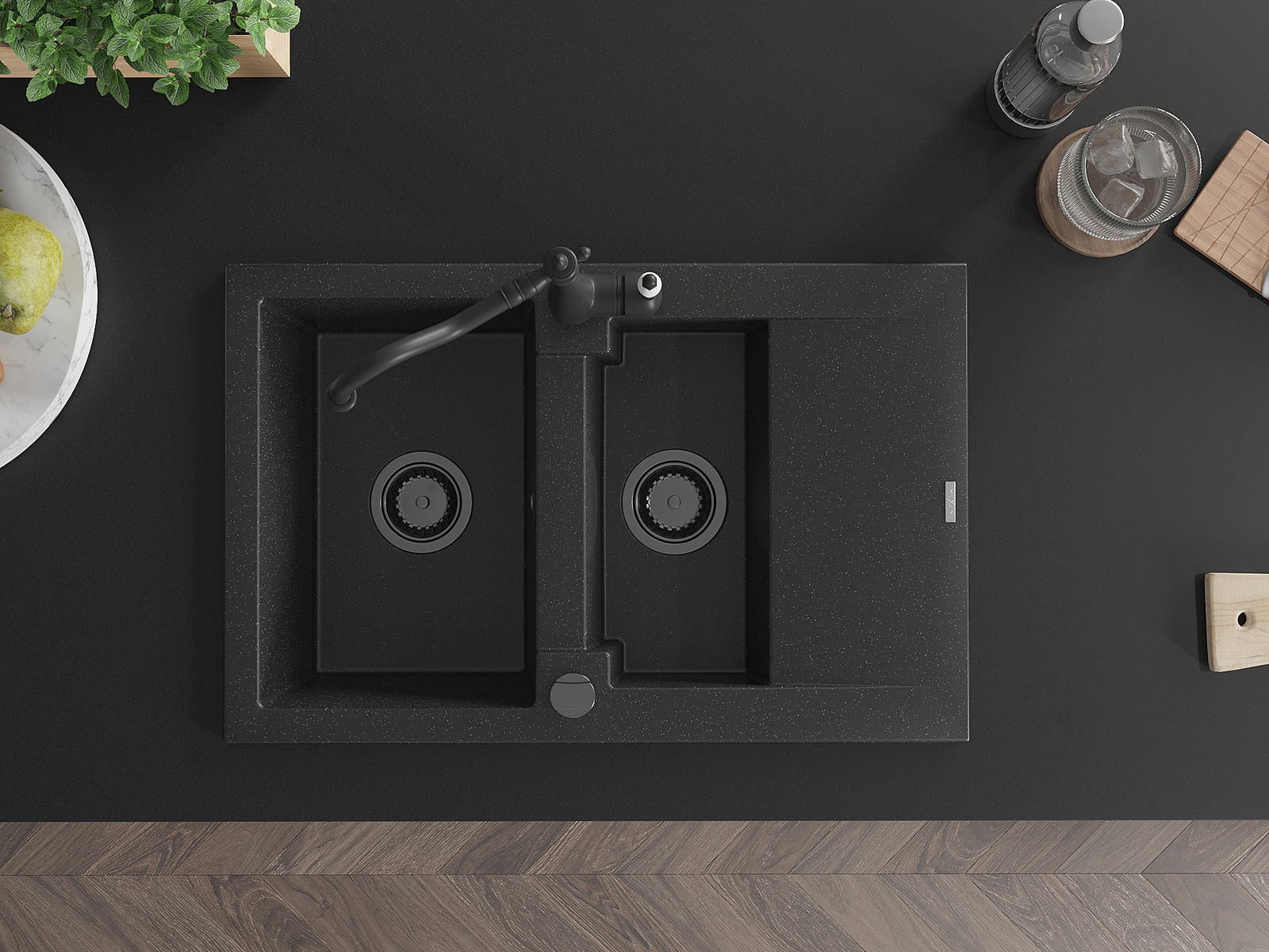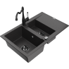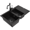 Mexen Gaspar 1,5 kamerų granitinė plautuvė su nutekėjimu ir virtuviniu maišytuvu Carla, juoda/sidabrinė