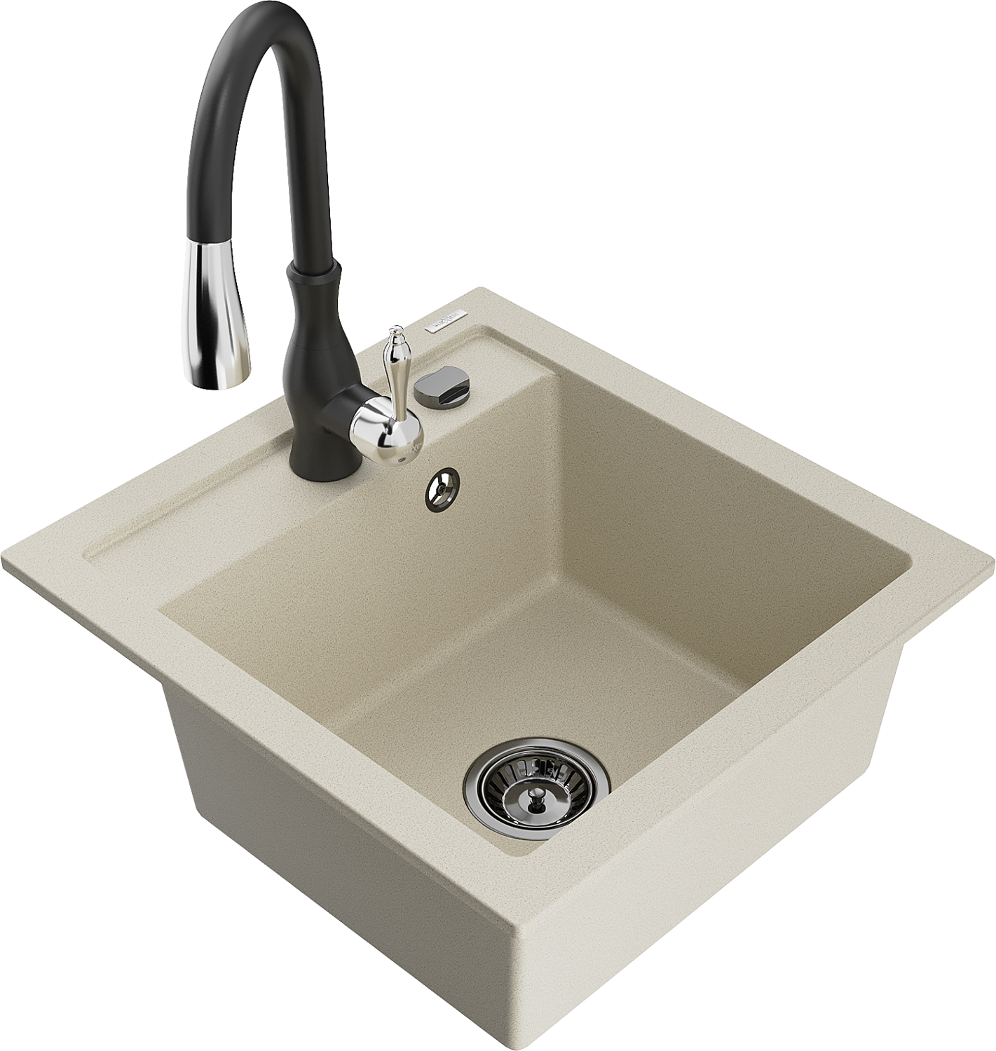 Mexen Vito granito virtuvės plautuvė 1 skyrelio su virtuviniu maišytuvu Savita, smėlio spalvos - 6503-69-672601-70