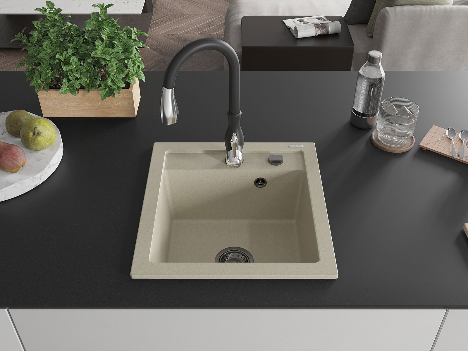 Kriauklės paviršius yra atsparūs dėmėms ir spalvos pasikeitimui, dėl kurio lengva valyti ir ilgą laiką išlaikyti savo spalvą. Estetinis ir praktiškai papildantis kiekvieną virtuvę.