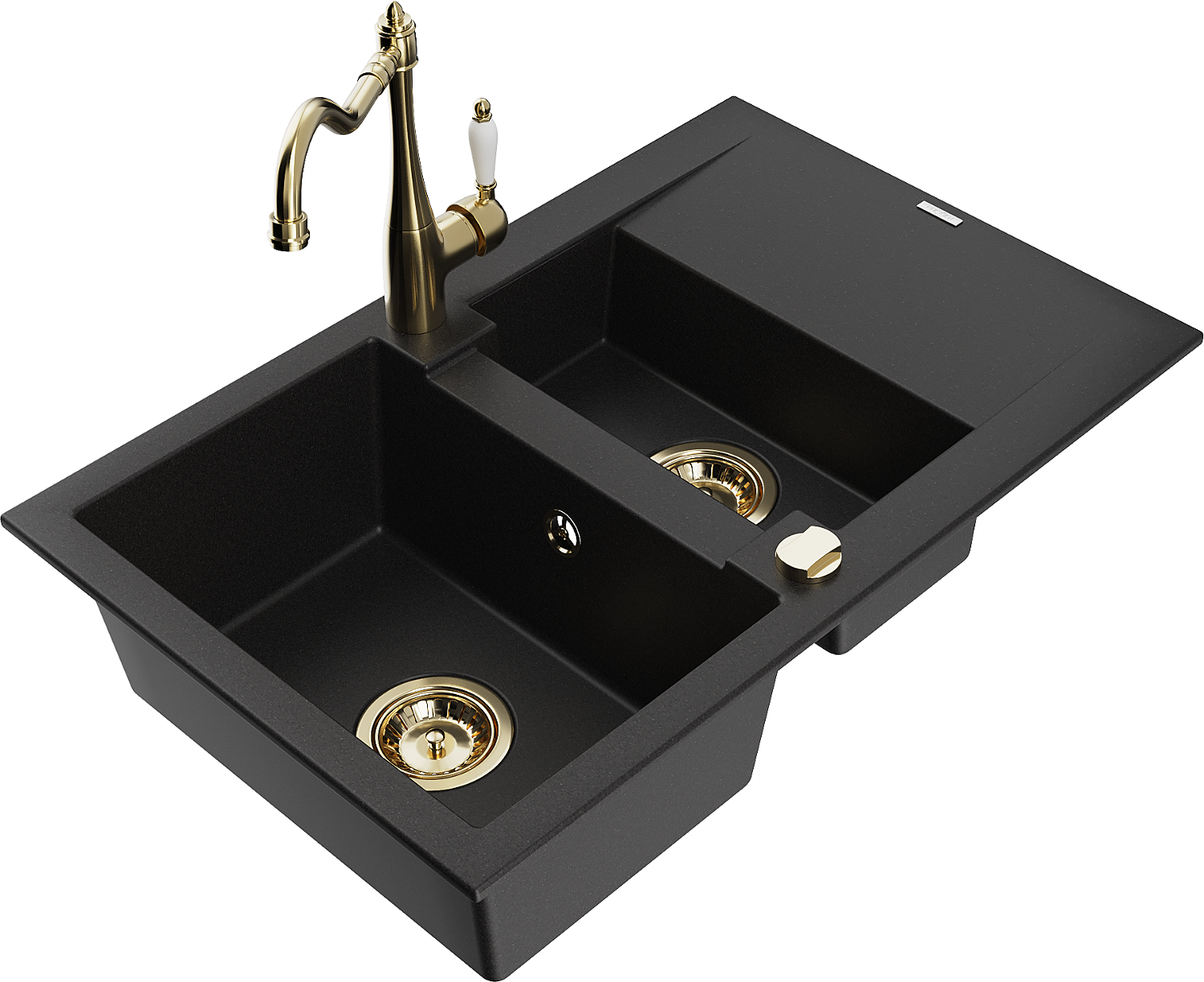 Mexen Gaspar granito plautuvė 1,5 skyriumi su nuvarvėjimo zona ir virtuviniu maišytuvu Carla, juoda - 6507-77-670700-50
