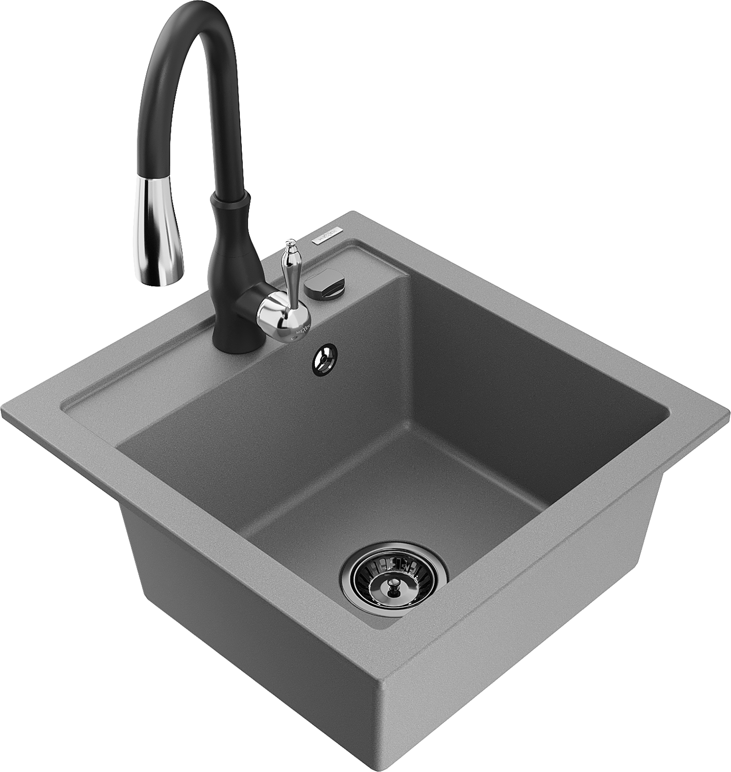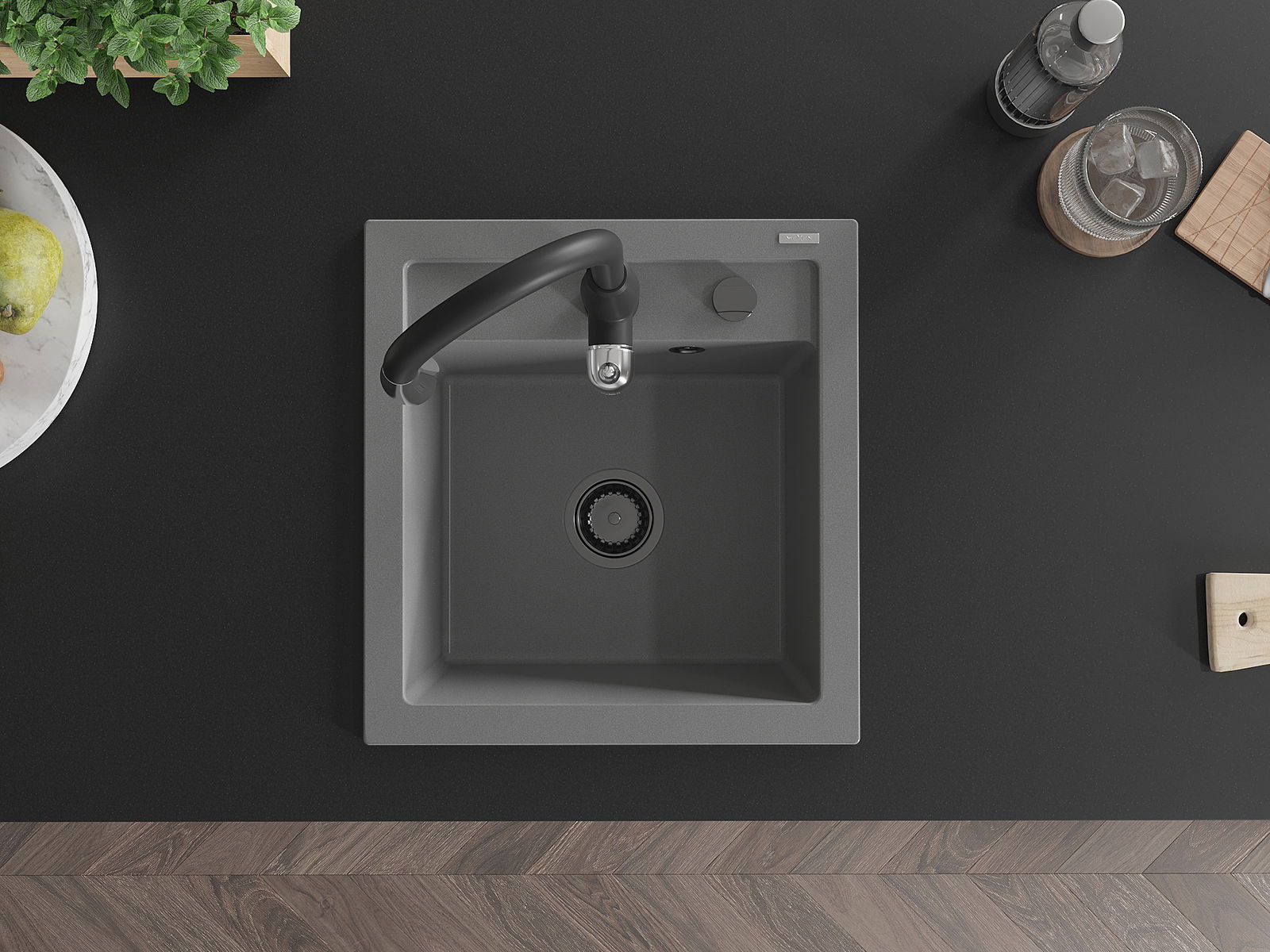 Mexen Vito granitinis vienos komoros plautuvas su virtuviniu maišytuvu Savita, pilkas - 6503-71-672601-70-B