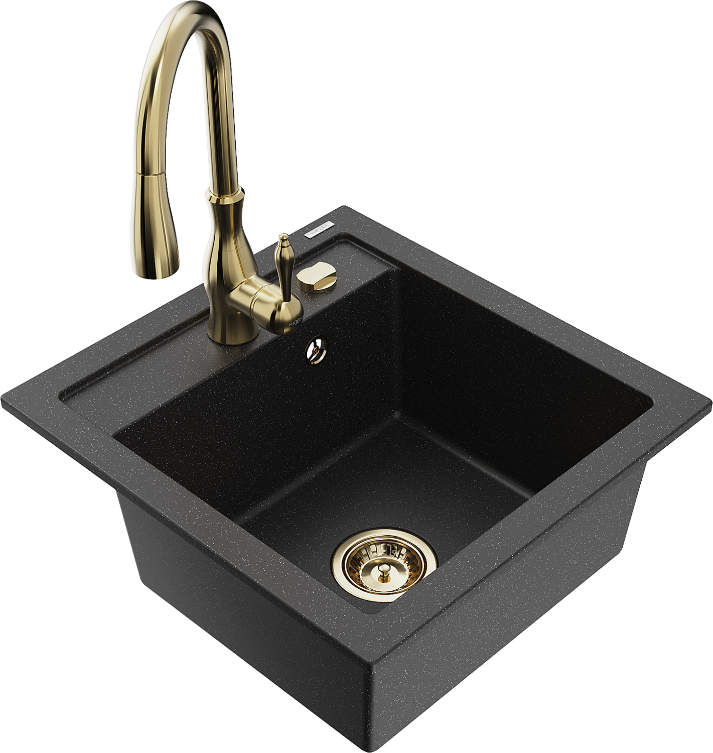Mexen Vito granito plautuvė su viena kamera ir virtuviniu maišytuvu Savita, juoda/sidabrinis metalikas - 6503-73-672601-50