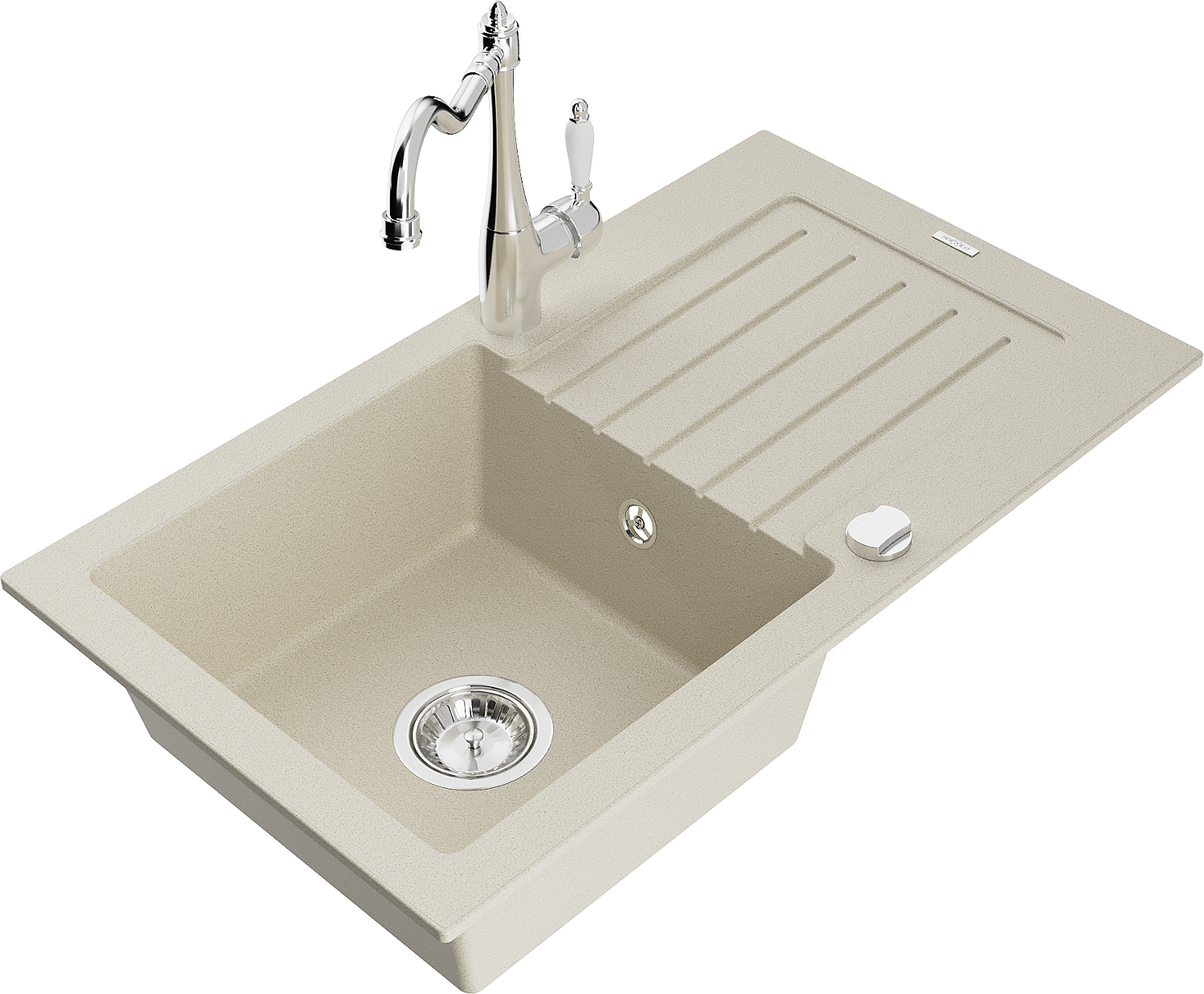 Mexen Pablo granitinė vienos kameros plautuvė su nusausintuvu ir virtuviniu maišytuvu Carla, smėlio - 6510-69-670700-00