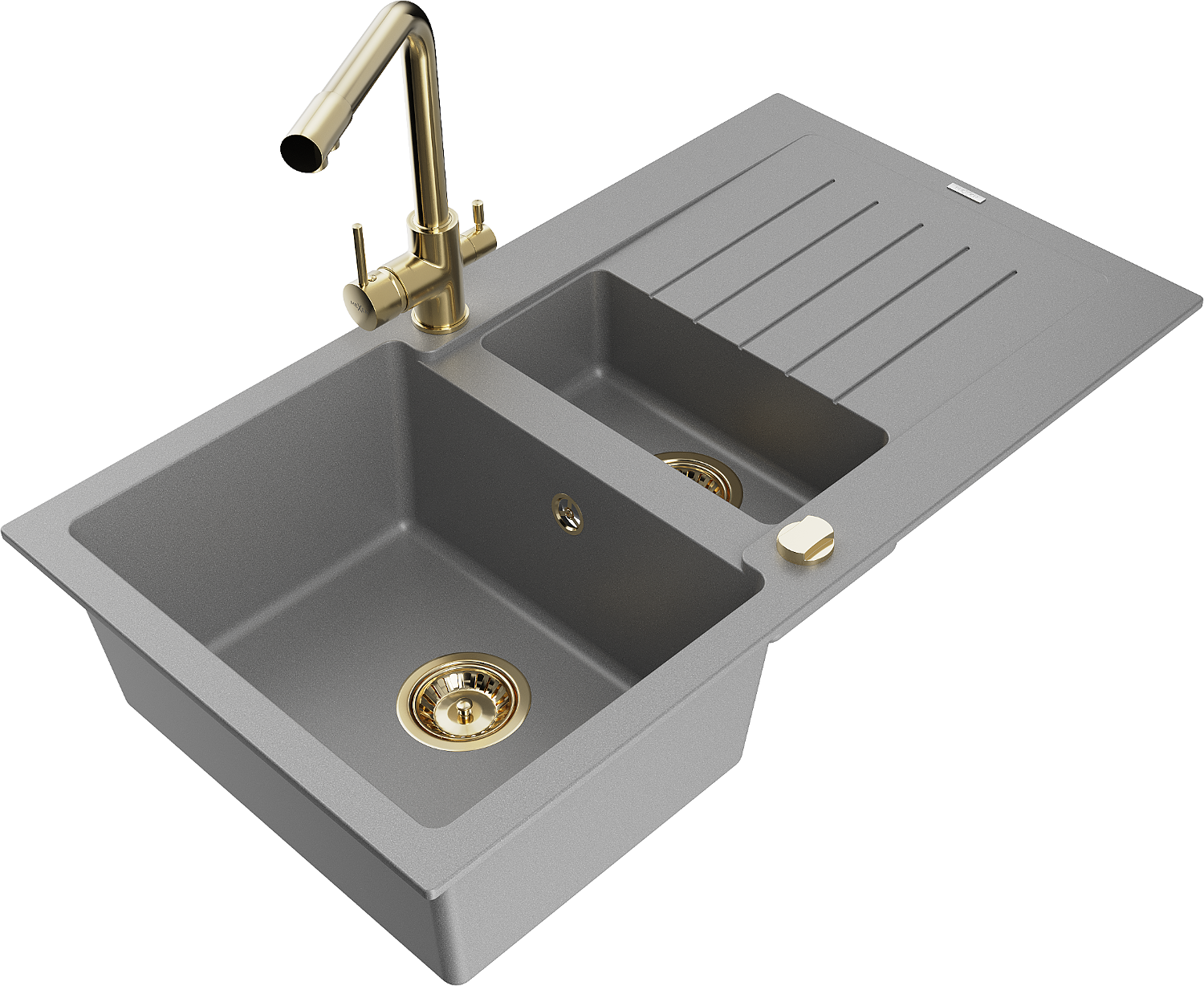 Mexen Matias granitinė kriauklė 1,5 kamerų su nuvarvėjimo zona ir virtuviniu maišytuvu Duero, pilka - 6502-71-671600-50