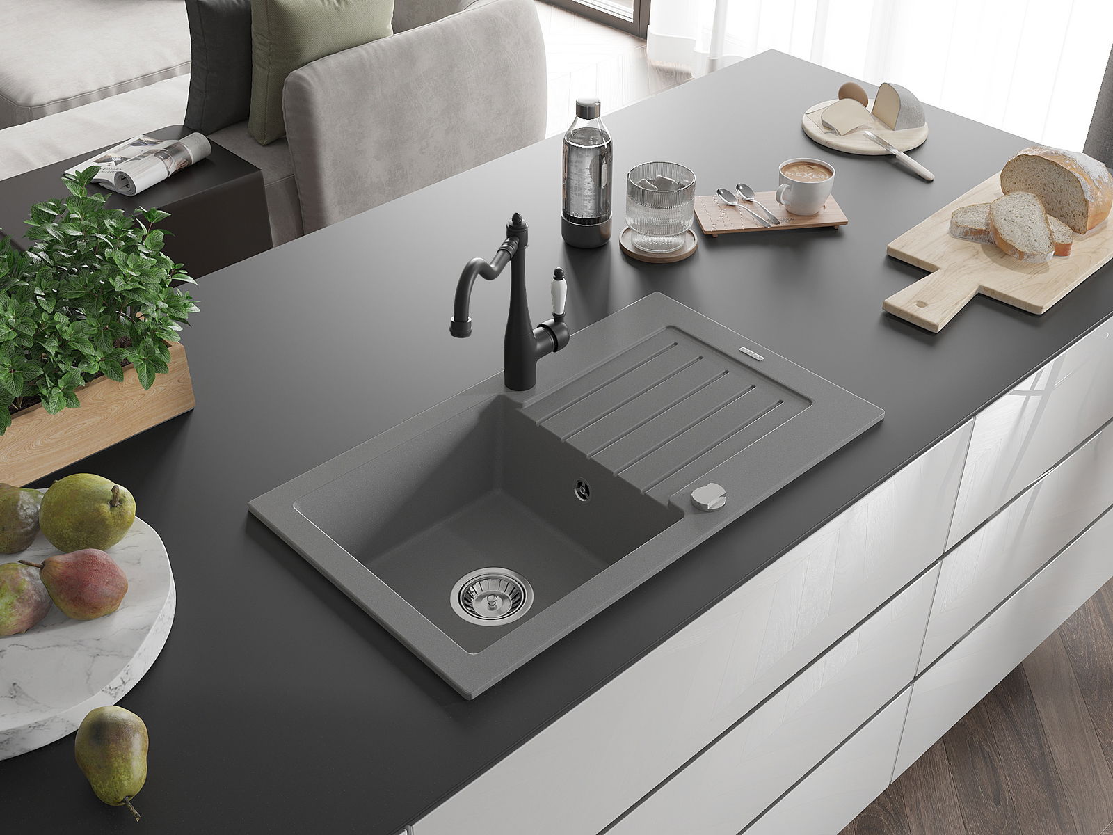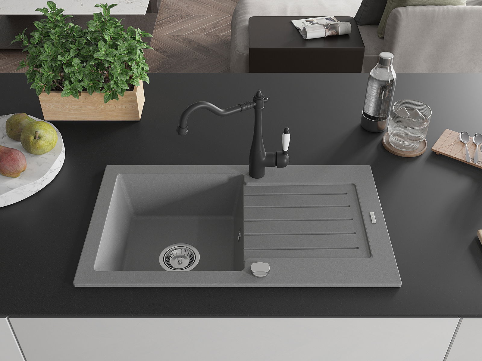 Kriauklės paviršius yra atsparus dėmėms ir spalvos pokyčiams, todėl jį lengva prižiūrėti ir jis išlaiko savo spalvą ilgą laiką. Estetiškai ir praktiškai papildo kiekvieną virtuvę.