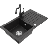 Mexen Pablo granitinis virtuvinis kriauklė 1-skyrių su nuvarveklu ir virtuviniu maišytuvu Carla, pilka - 6510-71-670700-70
