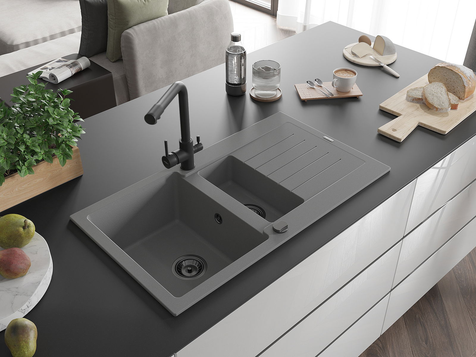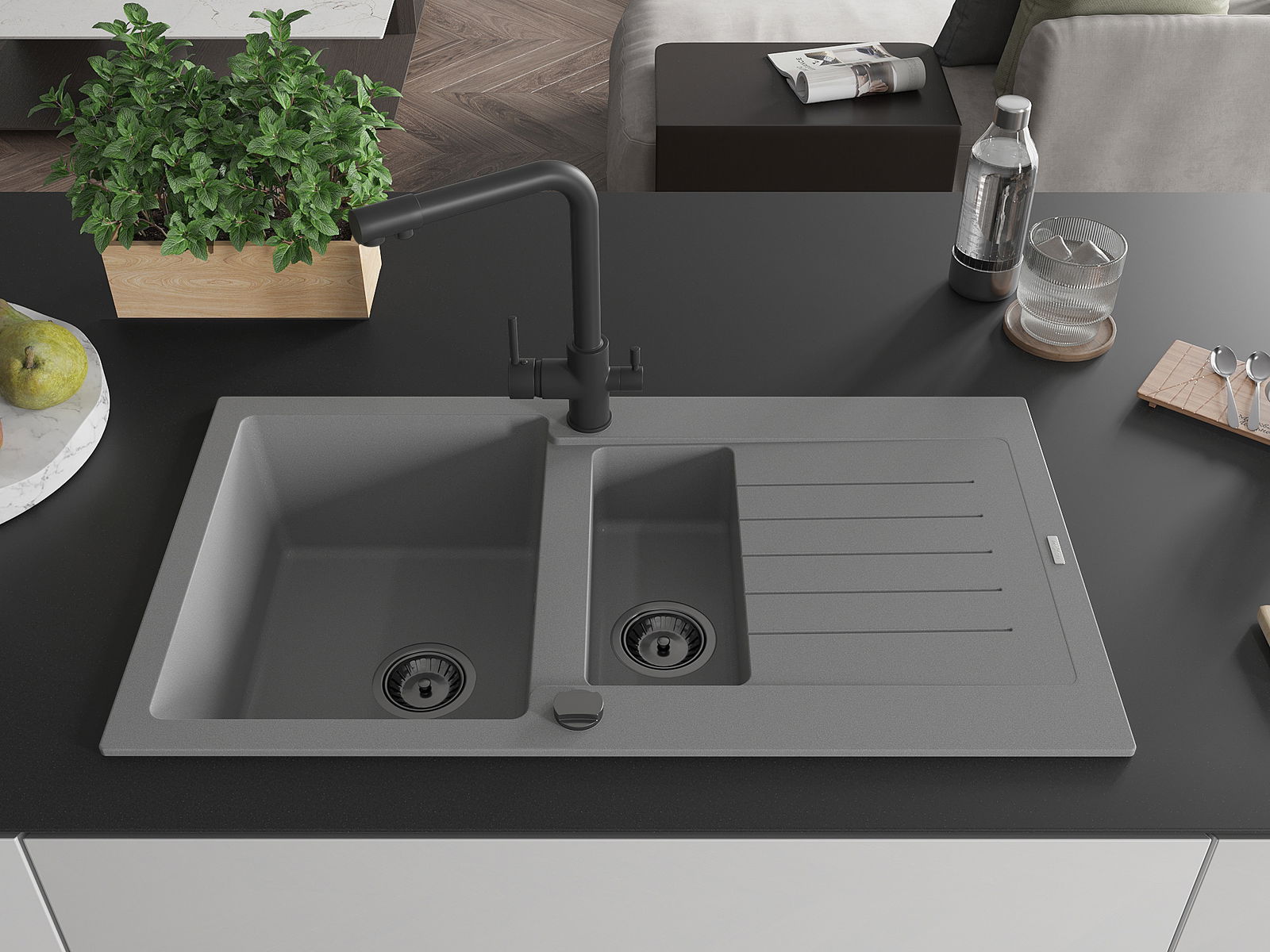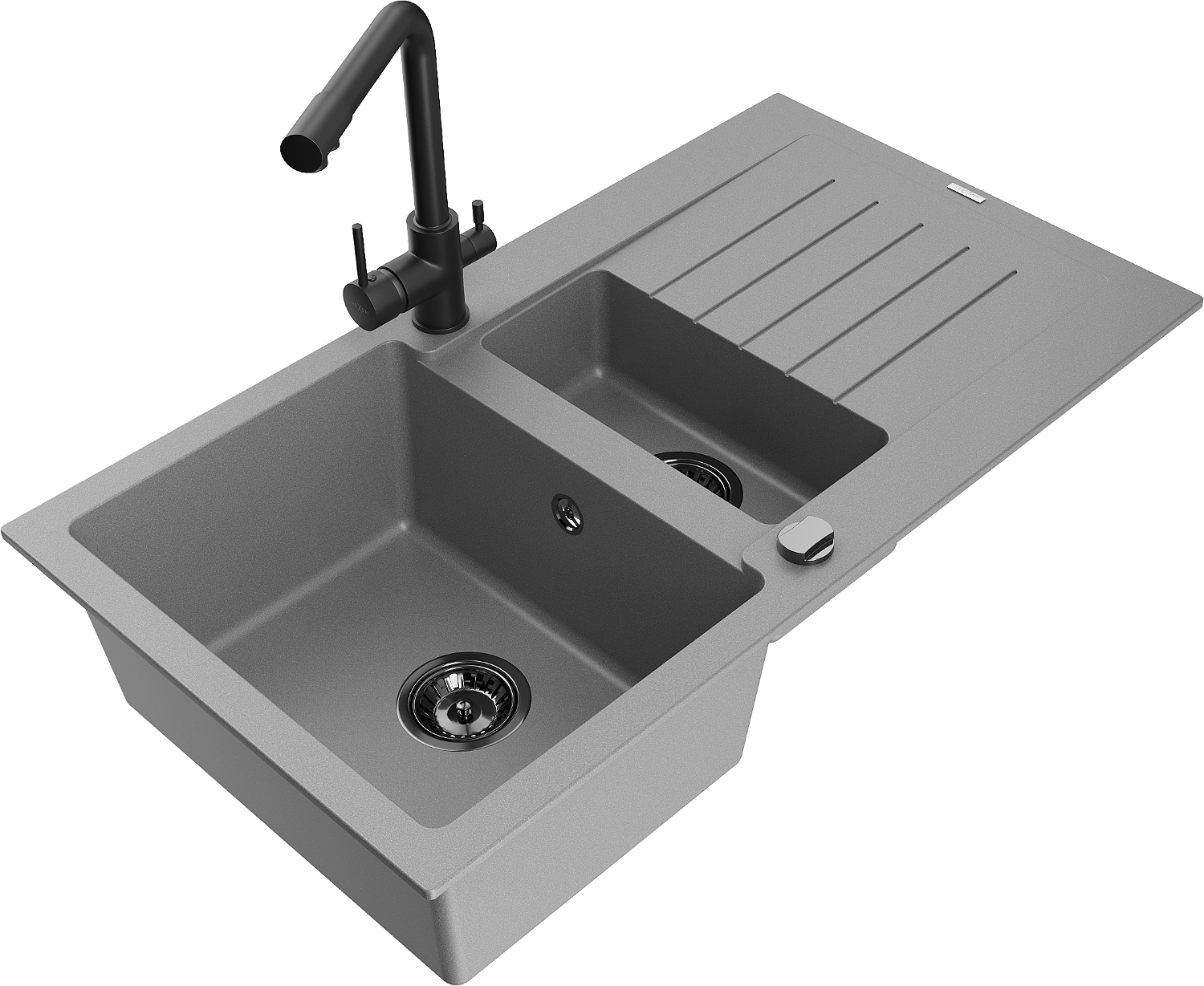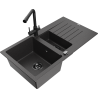Mexen Matias granitinis dviejų skyrių plautuvas su nusausintuvu ir Duero virtuvės maišytuvu, pilkas - 6502-71-671600-70-B