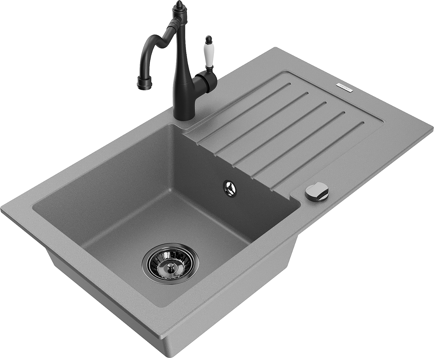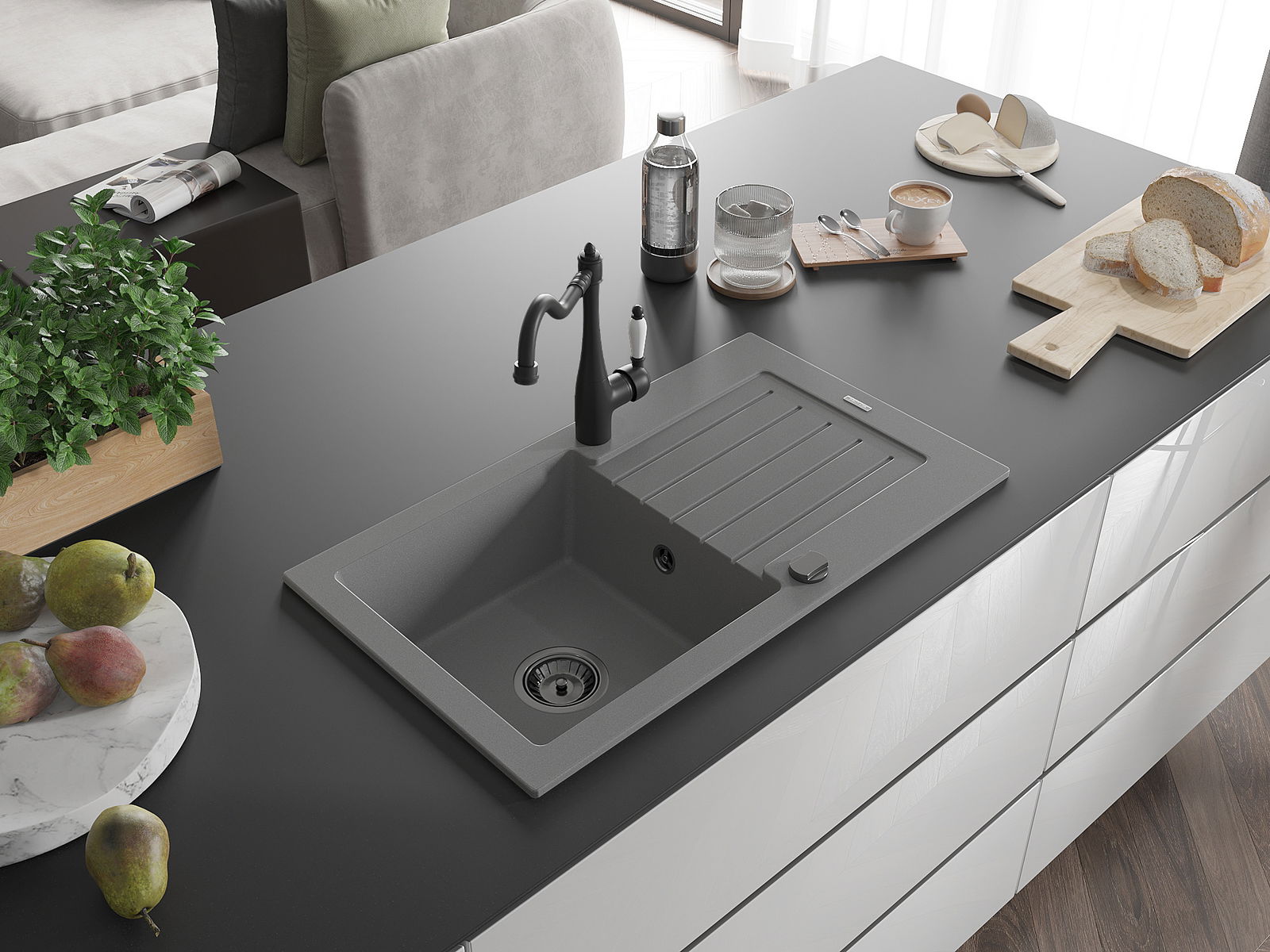 Mexen Pablo granitinis vienos skyrytos kriauklės su nutekėjimu ir virtuvinis maišytuvas Carla, pilkas - 6510-71-670700-70-B