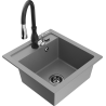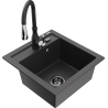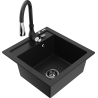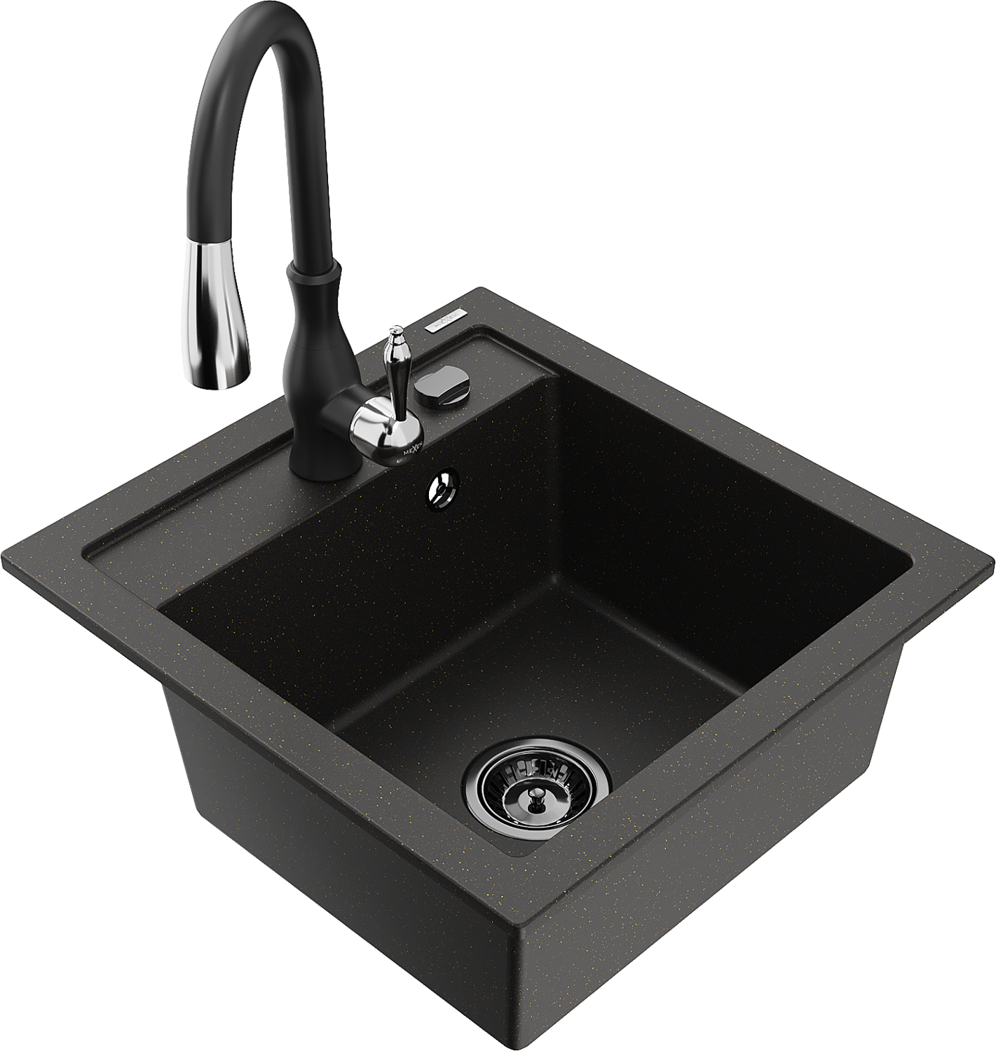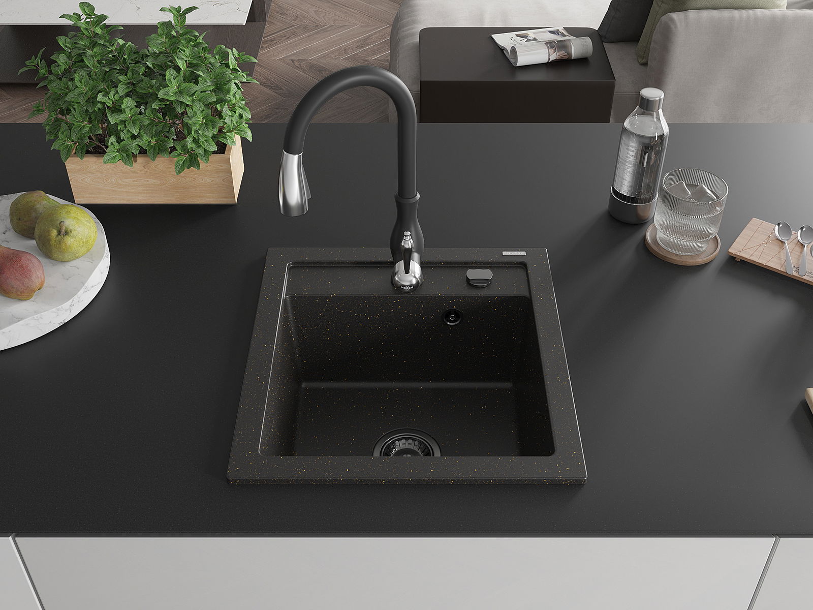 Mexen Vito granitinė vienos plautuvės kriauklė su virtuviniu maišytuvu Savita, juoda/auksinė metaliko - 6503-75-672601-70-B