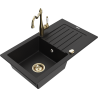 Mexen Pablo granitinis vienos kameros plautuvas su nutekėjimo lentyna ir virtuviniu maišytuvu Carla, juodas/sidabrinis metalika?