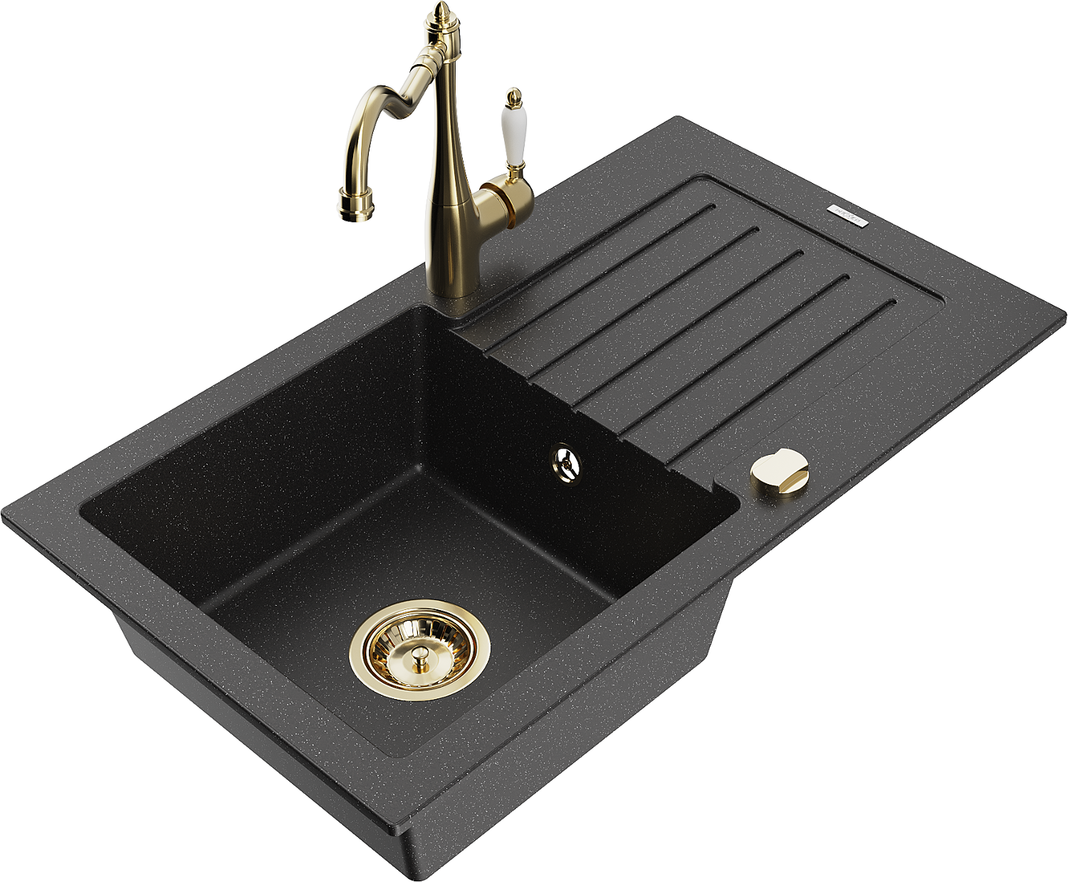 Mexen Pablo grindinis 1-dubens plautuvė su nuvarvėju ir virtuviniu maišytuvu Carla, juoda/sidabrinė metalika
