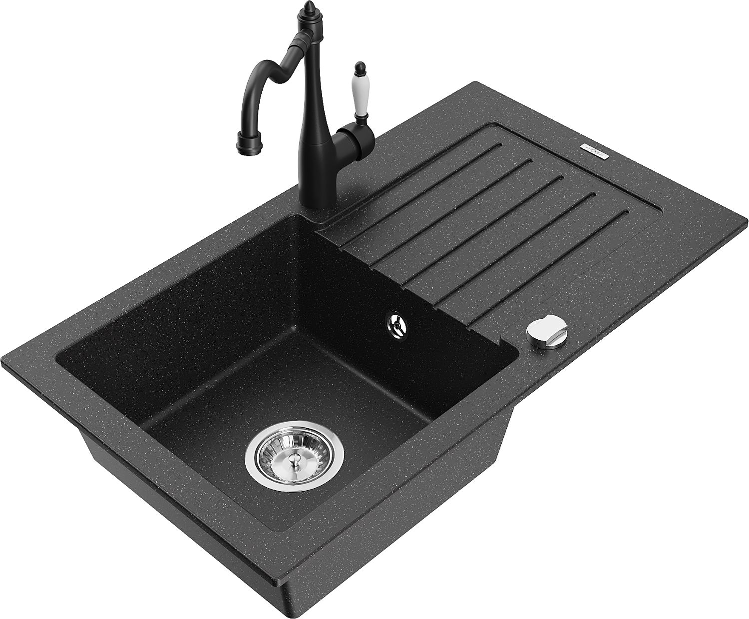 Mexen Pablo granitinis vienos dubens plautuvas su nusausintuvu ir Carla virtuvine maišytuve, juodas/sidabrinis metalikas - 6510?