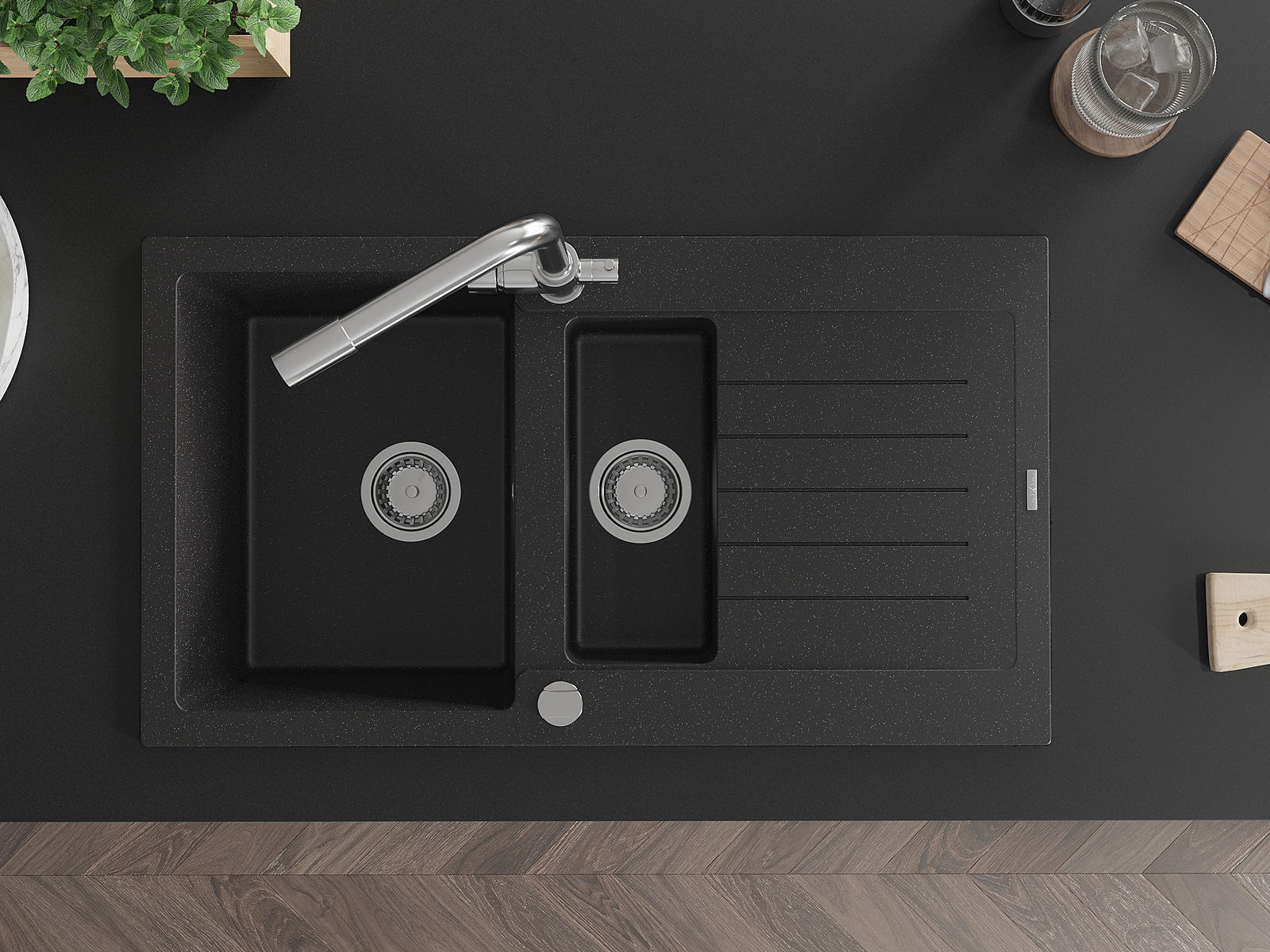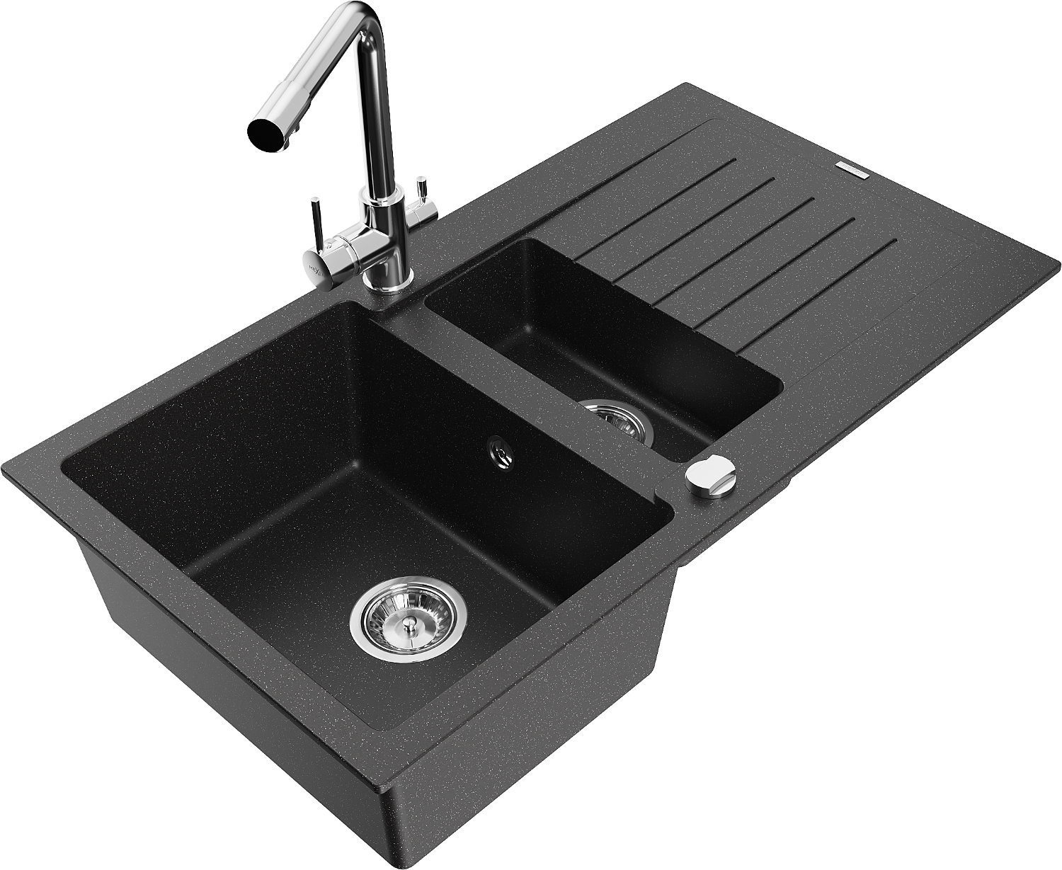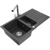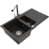 Mexen Matias granitinė 1,5 plautuvė su nusausintuvu ir virtuvės maišytuvu Duero, juodas/sidabrinis metalikas