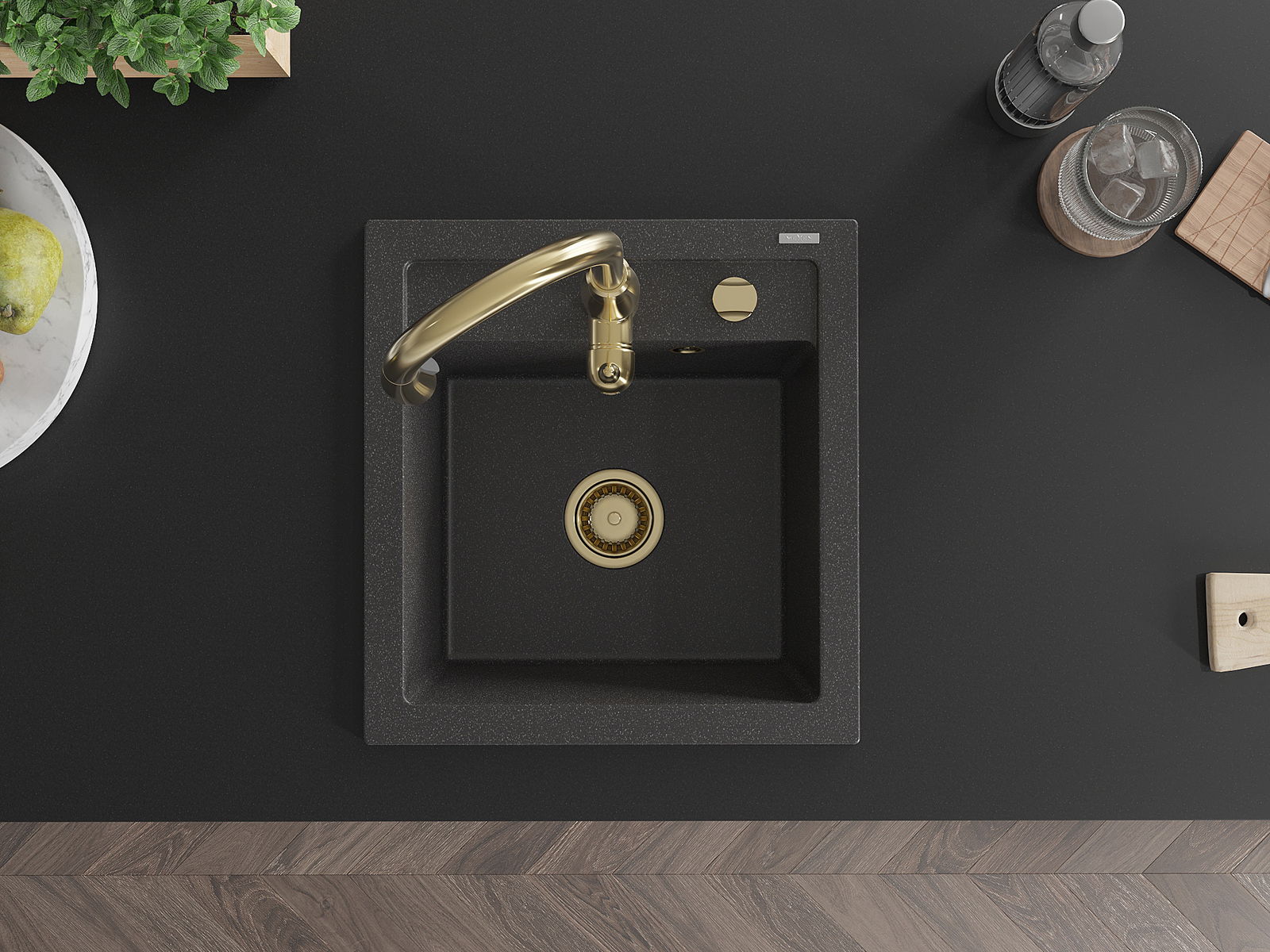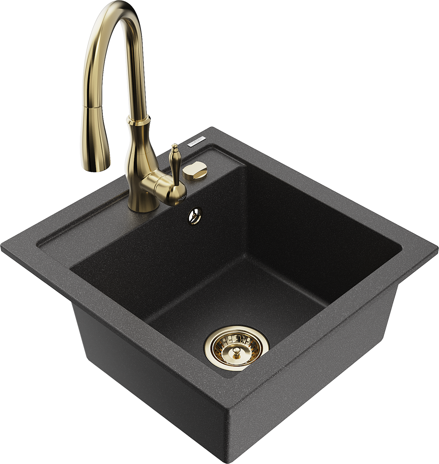 Mexen Vito granito plautuvė 1 kamerų su virtuviniu maišytuvu Savita, juoda dėmėta - 6503-76-672601-50