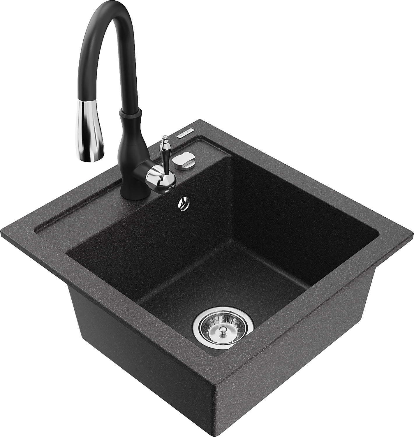Mexen Vito vienos kameros granito plautuvė su Savita virtuves maišytuvu, juoda su dėmėmis - 6503-76-672601-70