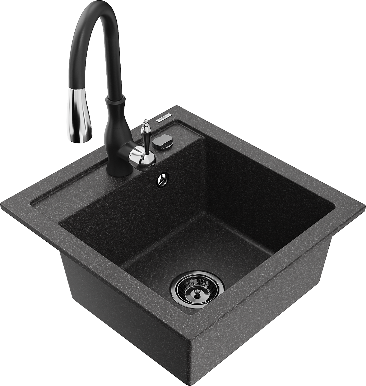 Mexen Vito vienos kameros granitinis virtuvės plautuvas su virtuvės maišytuvu Savita, juodas dėmėtas - 6503-76-672601-70-B