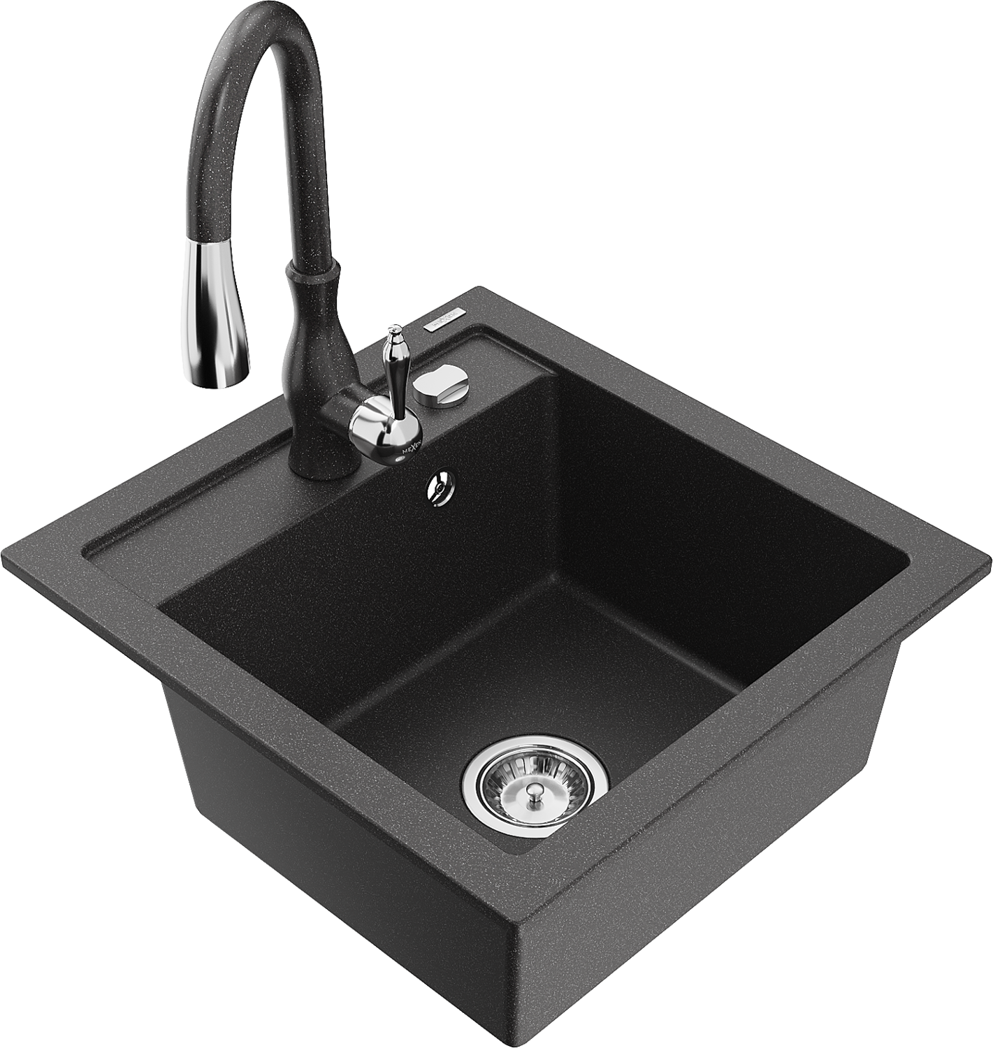 Mexen Vito vienos kriauklės granito plautuvė su virtuviniu maišytuvu Savita, juodas dėmėtas - 6503-76-672601-76