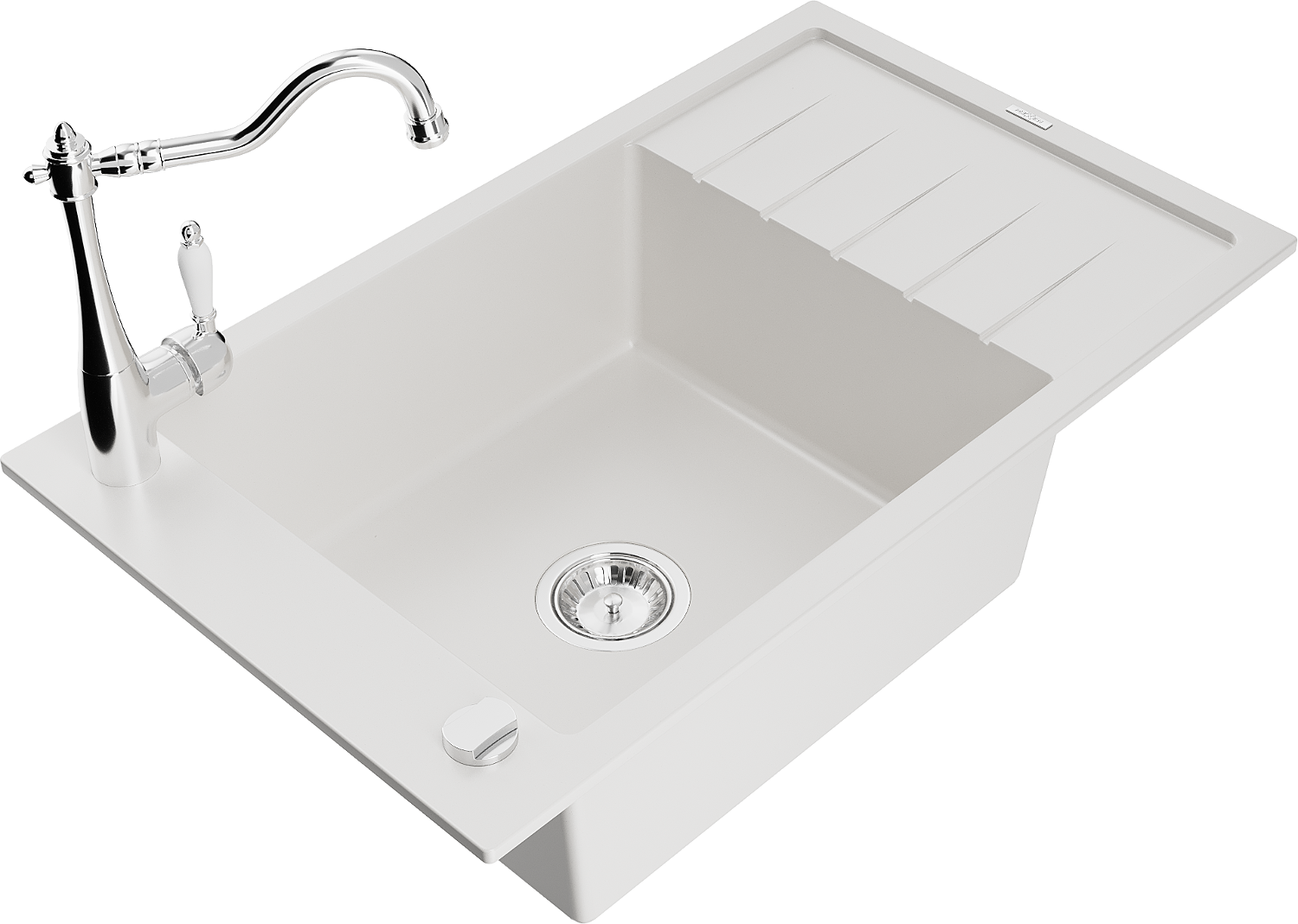 Mexen Elias granito plautuvė su vienu dubeniu, nuvarvėjimo zona ir maišytuvu Carla, balta - 6511-20-670700-00