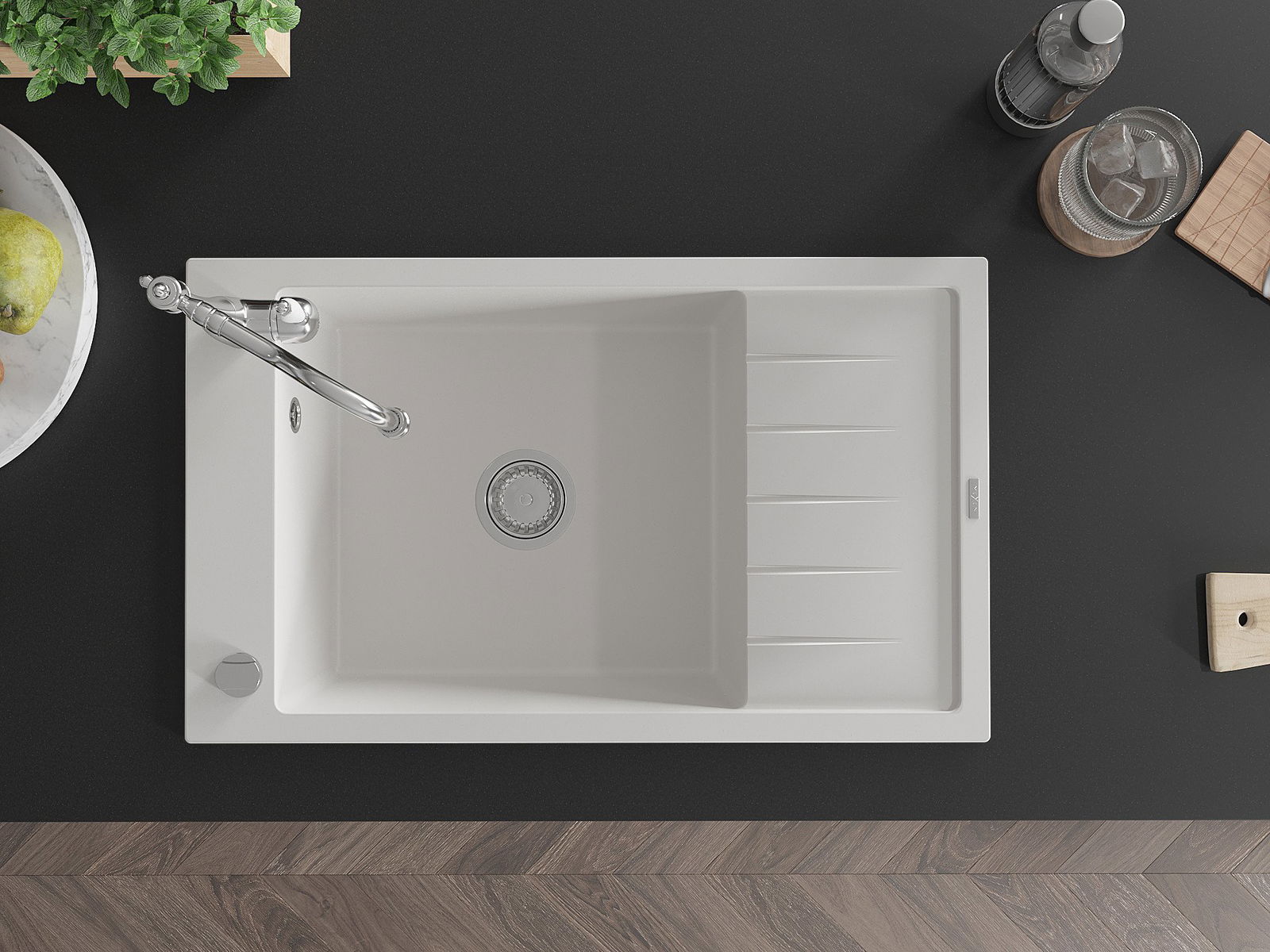 Kriauklės paviršius yra atsparūs dėmėms ir spalvos pasikeitimui, dėl kurio lengva valyti ir ilgą laiką išlaikyti savo spalvą. Estetinis ir praktiškai papildantis kiekvieną virtuvę.