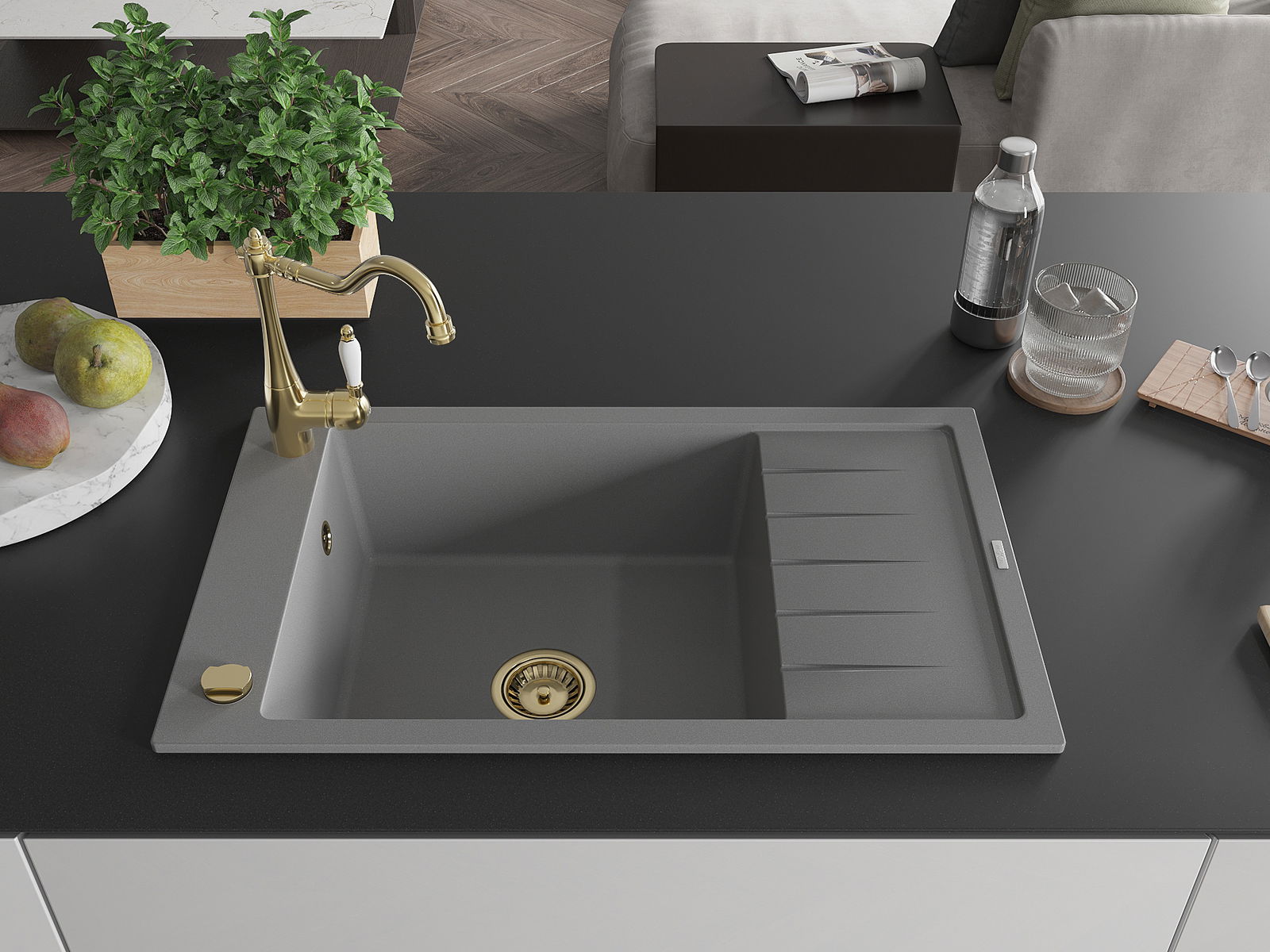 Kriauklės paviršius yra atsparūs dėmėms ir spalvos pasikeitimui, dėl kurio lengva valyti ir ilgą laiką išlaikyti savo spalvą. Estetinis ir praktiškai papildantis kiekvieną virtuvę.