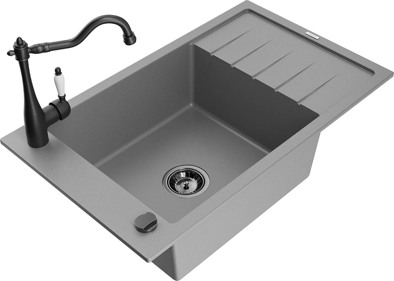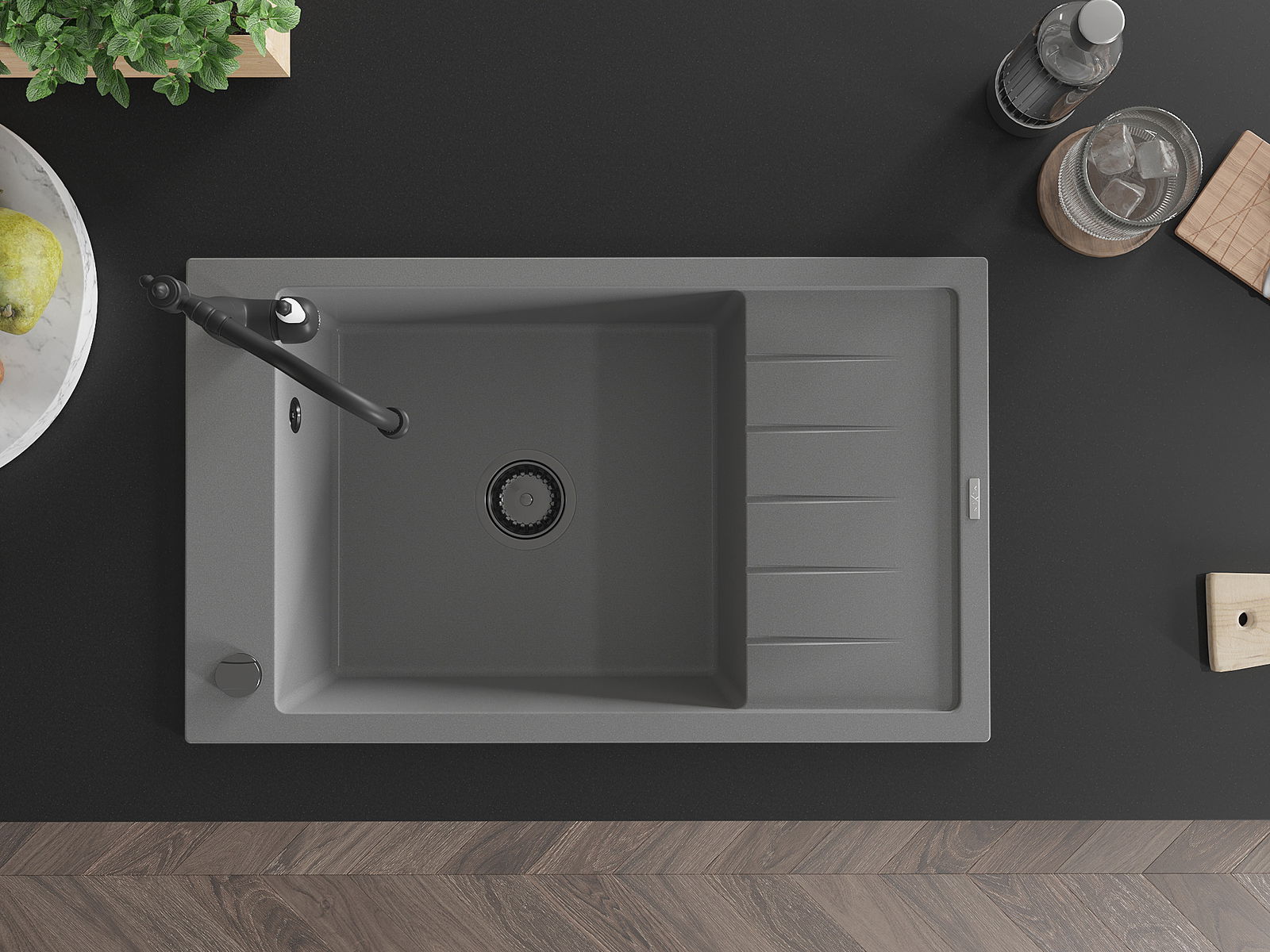 Mexen Elias granitinė virtuvinė kriauklė su indaplove ir virtuviniu maišytuvu Carla, pilkas - 6511-71-670700-70-B