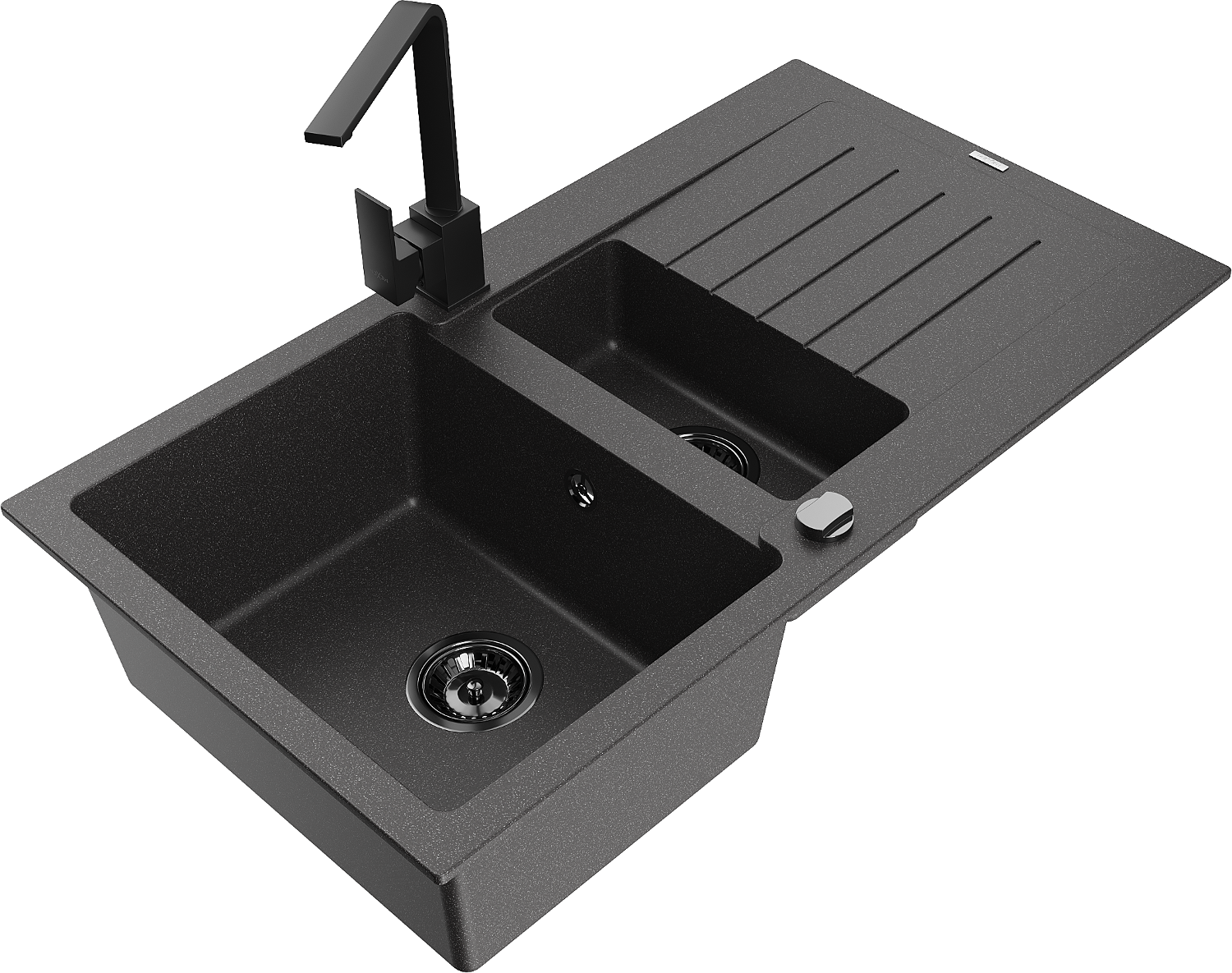 Mexen Matias granito plautuvė 1,5 kameros su lašaliu ir virtuvės maišytuvu Rita, juoda taškuota - 6502-76-670300-70-B