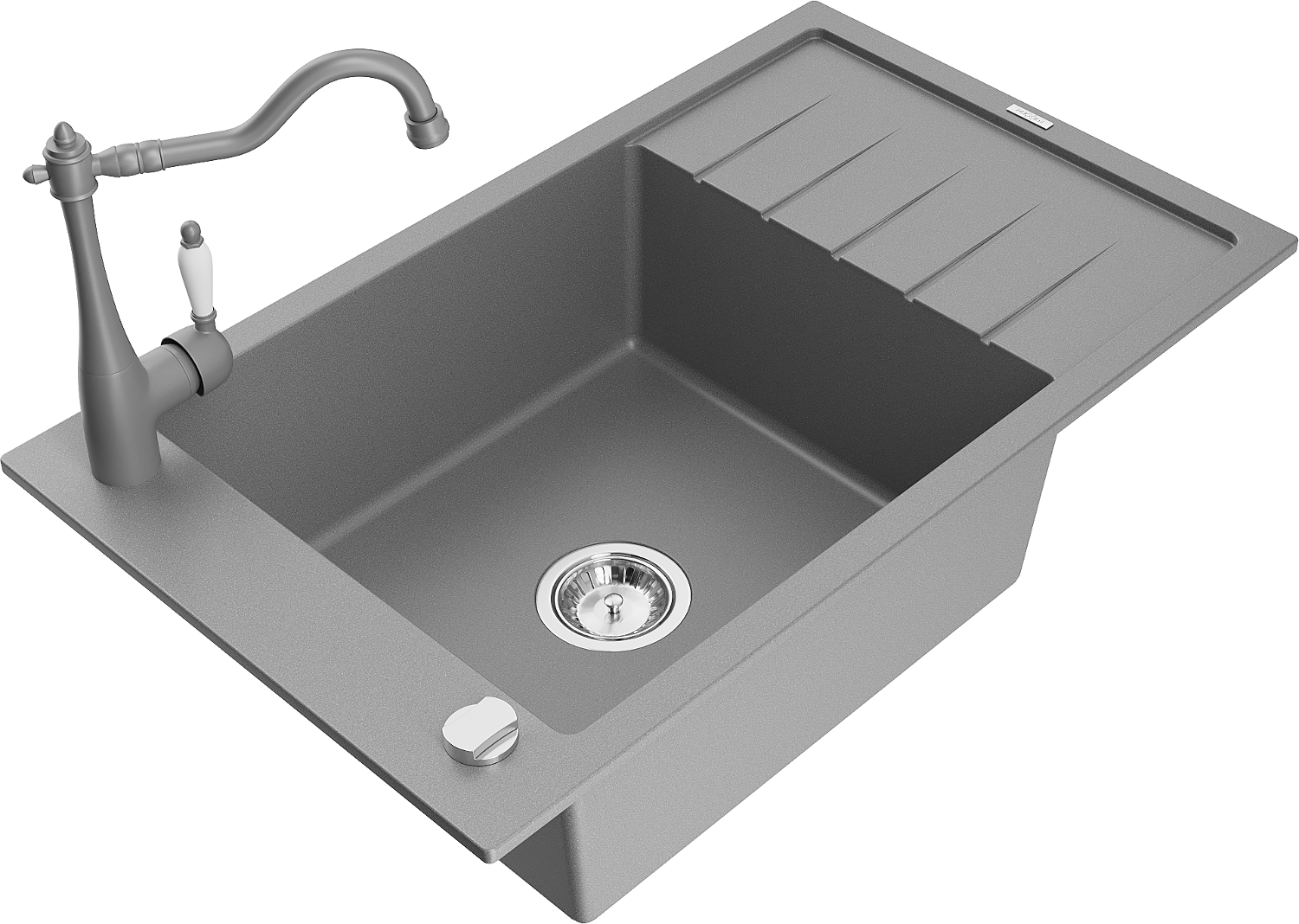 Mexen Elias vienos kameros granitinė plautuvė su nutekėjimo vieta ir Carla virtuvės čiaupu, pilka - 6511-71-670700-71