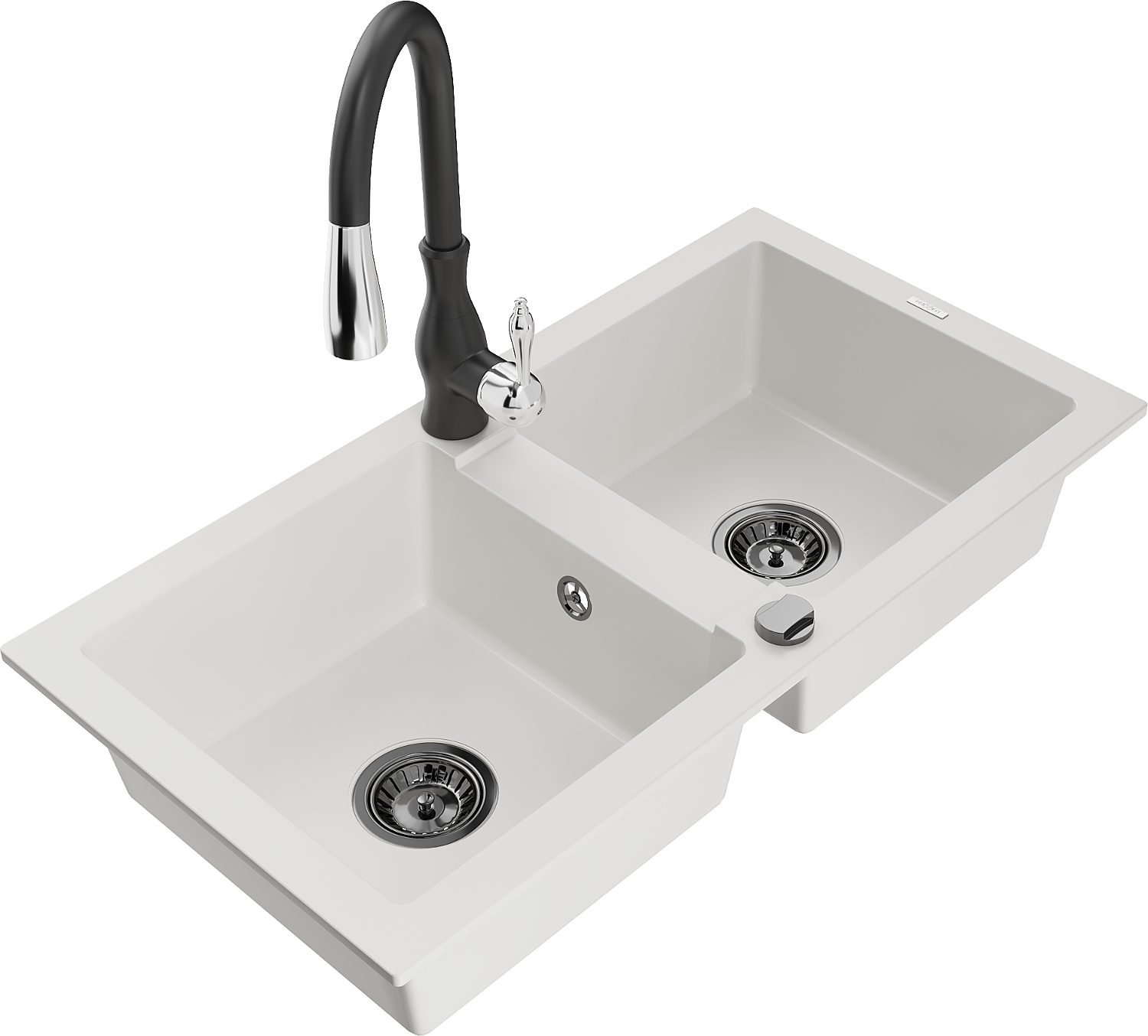 Mexen Mario granito plautuvė dviejų kamerų su virtuviniu maišytuvu Savita, balta - 6504-20-672601-70