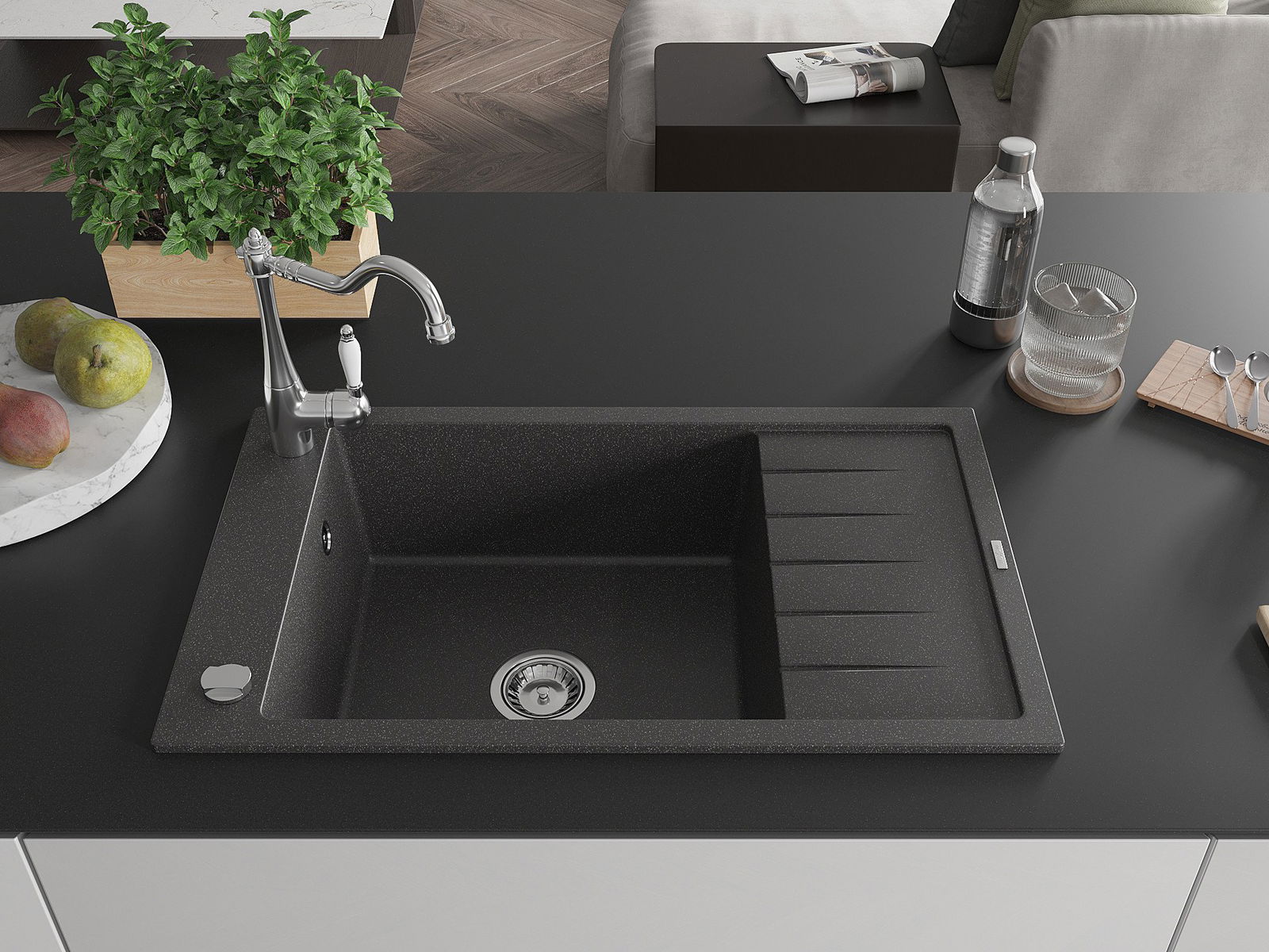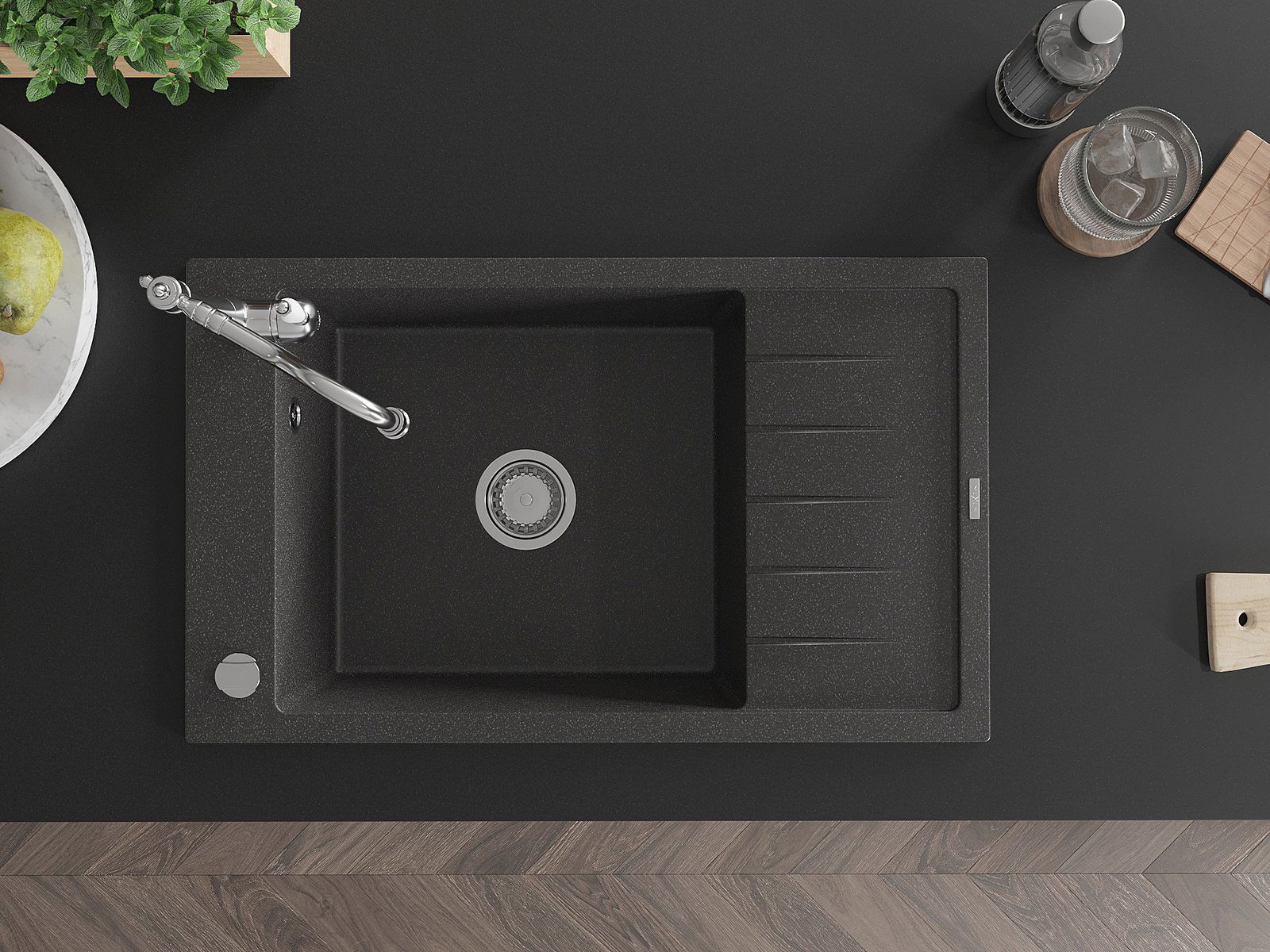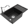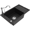 Mexen Elias granitinė vienos plautuvės kriauklė su nusausinimo zona ir virtuviniu maišytuvu Carla, juoda su taškeliais