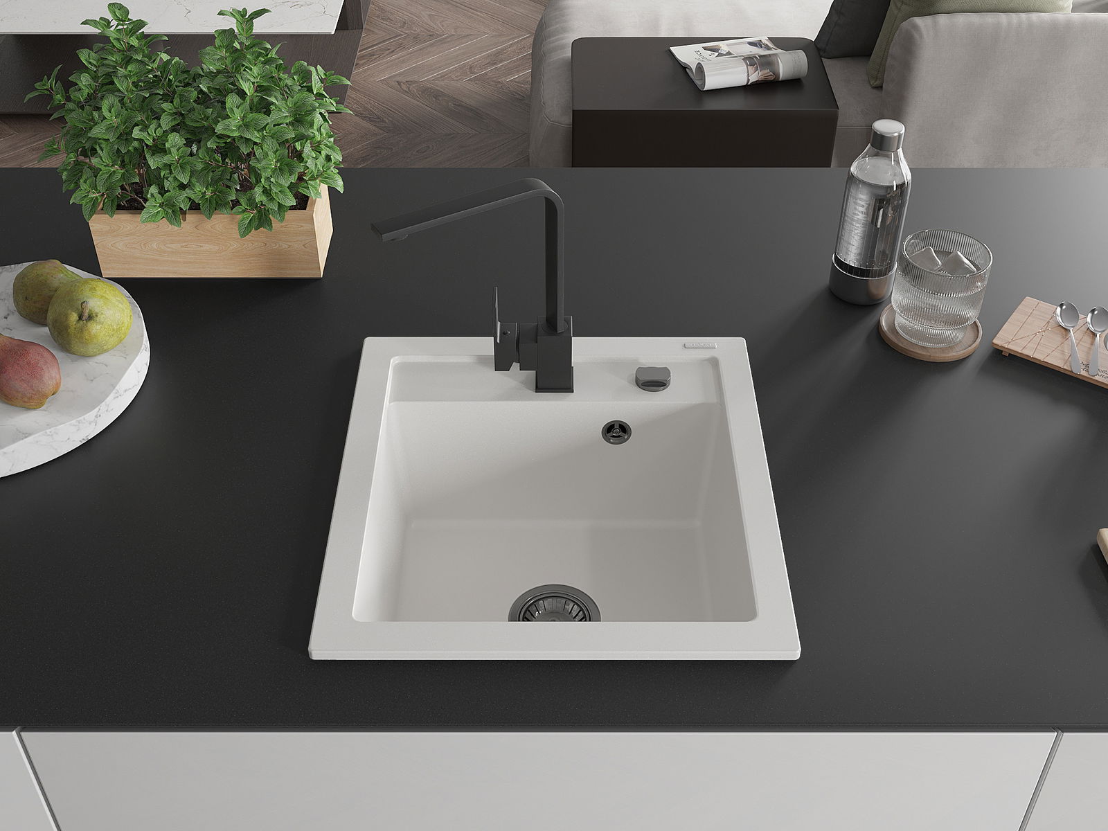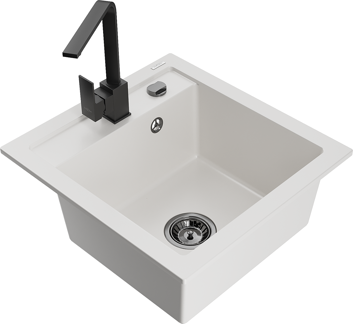 Mexen Vito granito kriauklė su vienu skyriumi ir virtuviniu maišytuvu Rita, balta - 6503-20-670300-70
