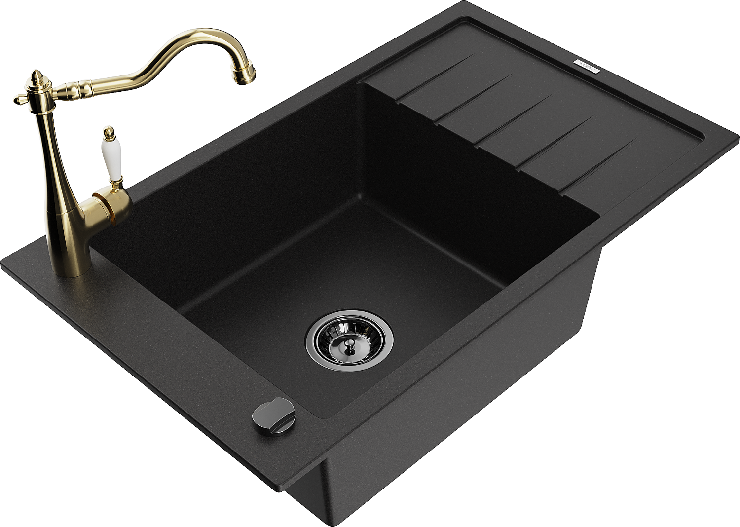 Mexen Elias granito plautuvėle su viena kamera, nuvarvėjimo vieta ir virtuviniu maišytuvu Carla, juoda - 6511-77-670700-50-B