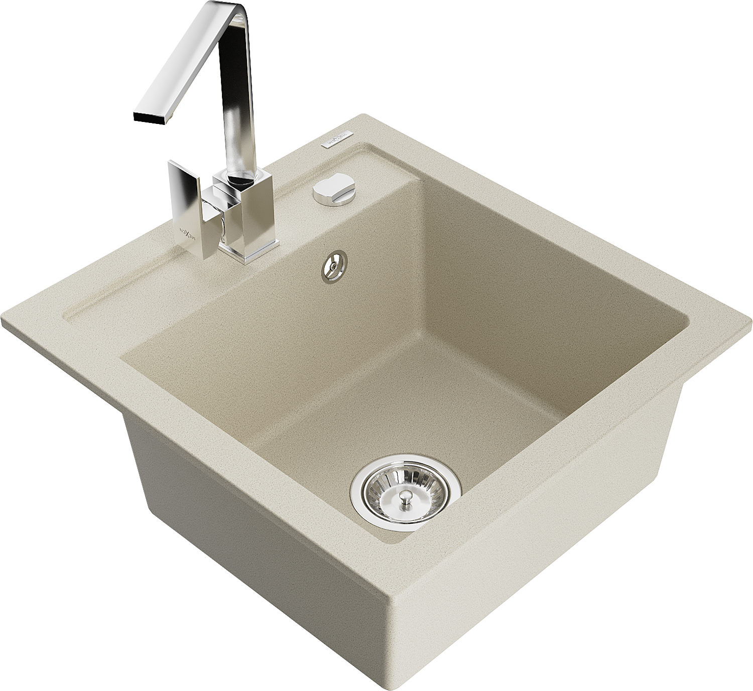 Mexen Vito granitinė virtuvės kriauklė su 1 dubeniu ir virtuviniu maišytuvu Rita, smėlio spalvos - 6503-69-670300-00