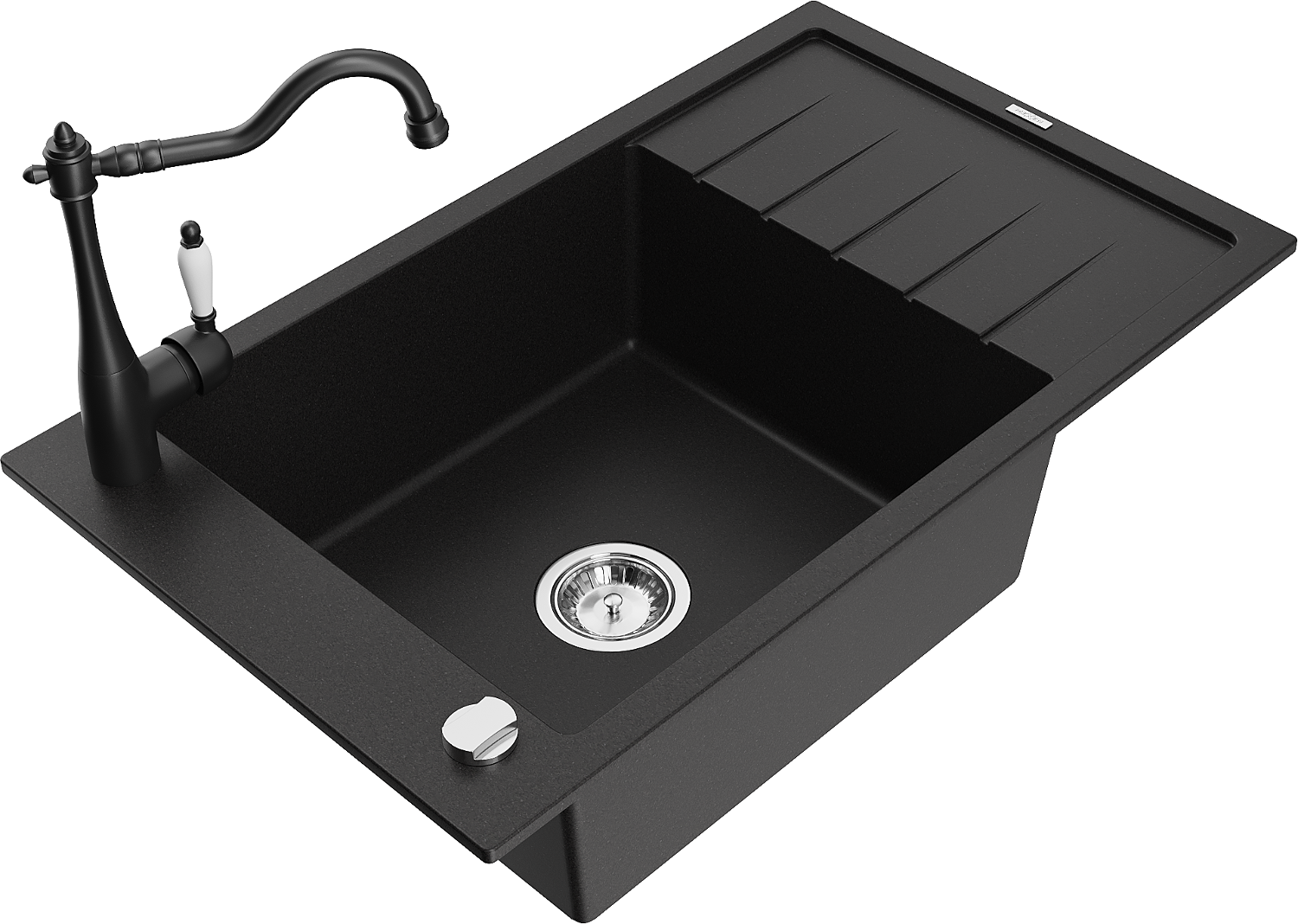 Mexen Elias granito plautuvė su viena kamera, lašintuvu ir virtuviniu maišytuvu Carla, juoda - 6511-77-670700-70