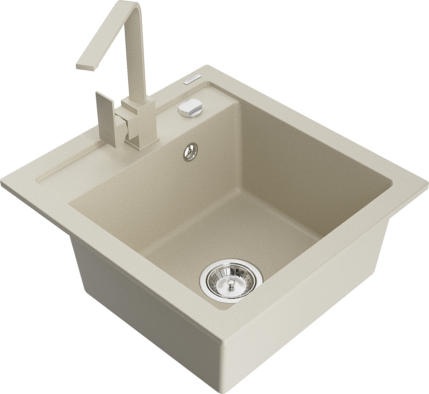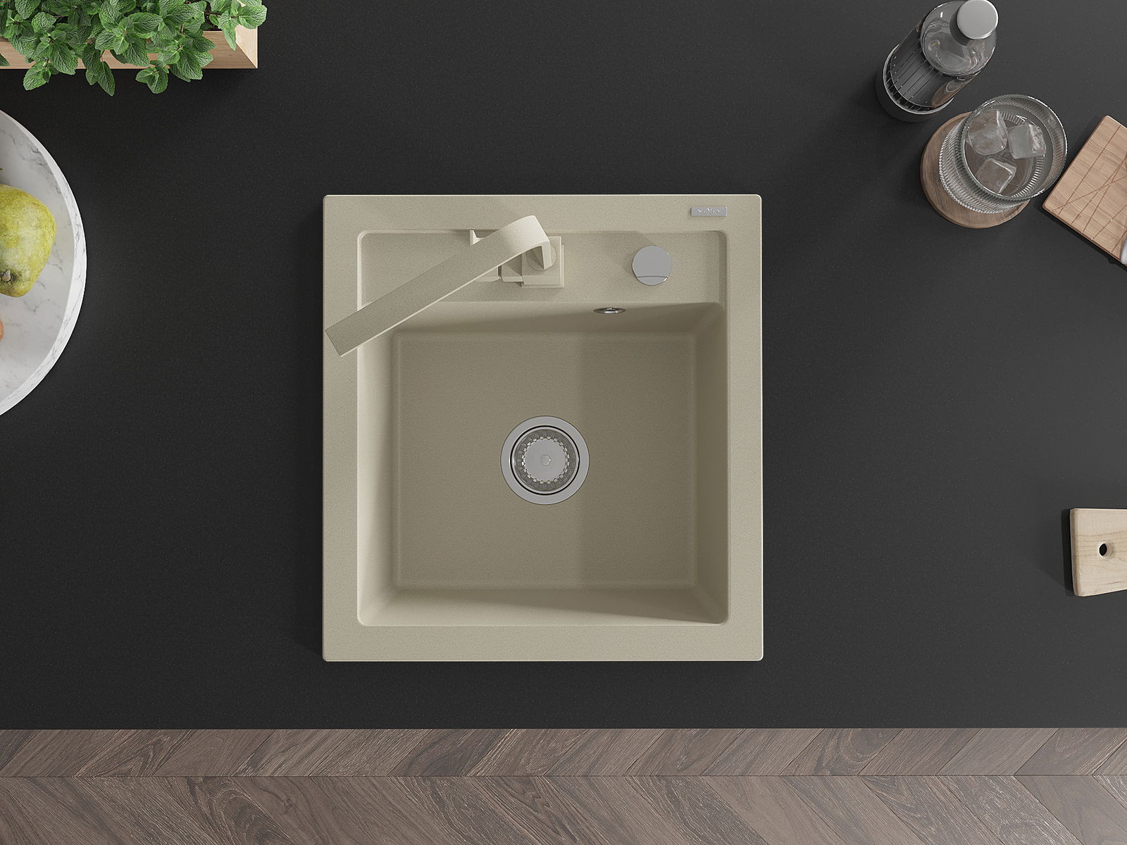 Mexen Vito granito plautuvė su 1 kamera ir virtuviniu maišytuvu Rita, smėlio spalvos - 6503-69-670300-69