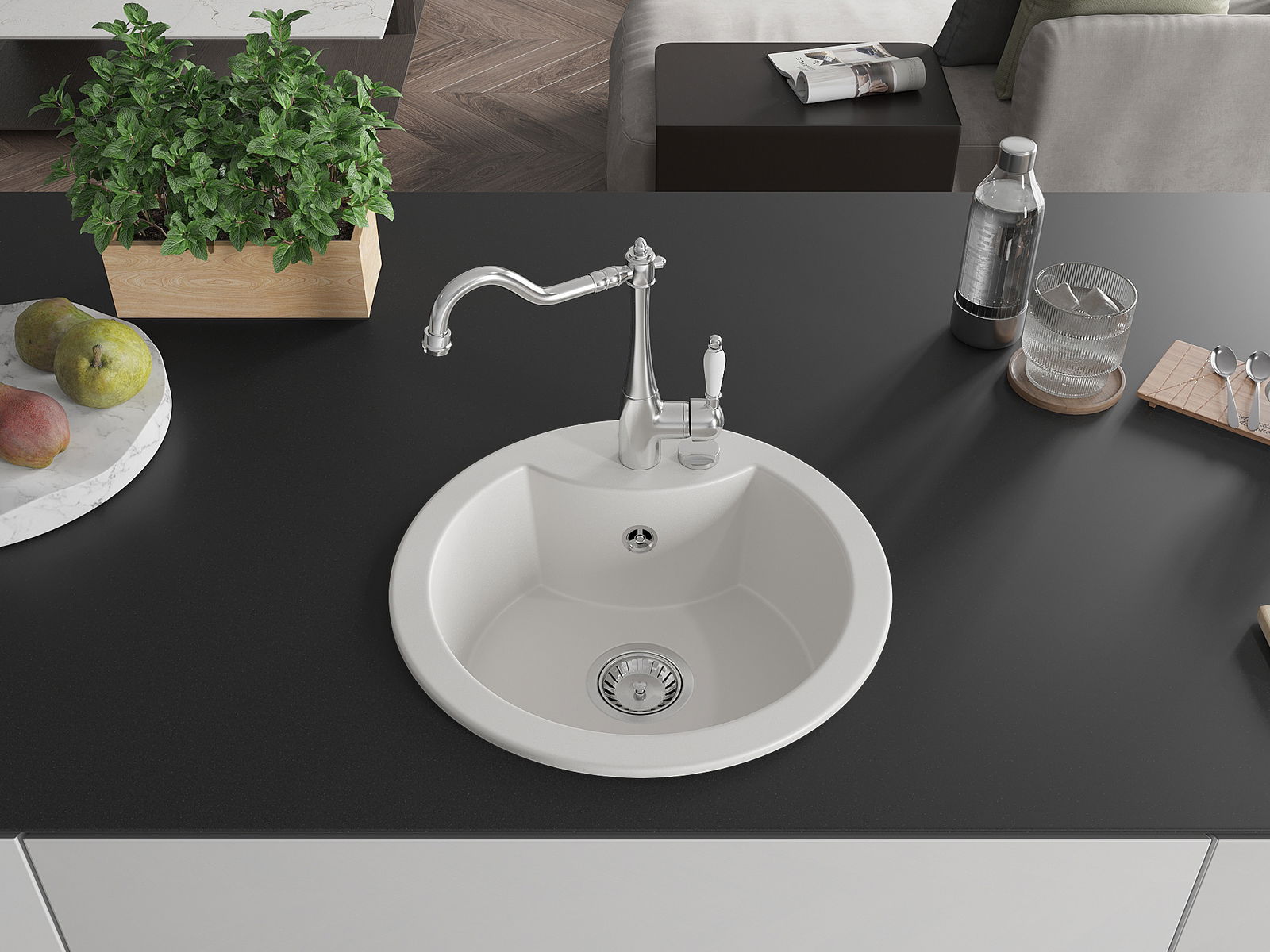 Kriauklės paviršius yra atsparūs dėmėms ir spalvos pasikeitimui, dėl kurio lengva valyti ir ilgą laiką išlaikyti savo spalvą. Estetinis ir praktiškai papildantis kiekvieną virtuvę.