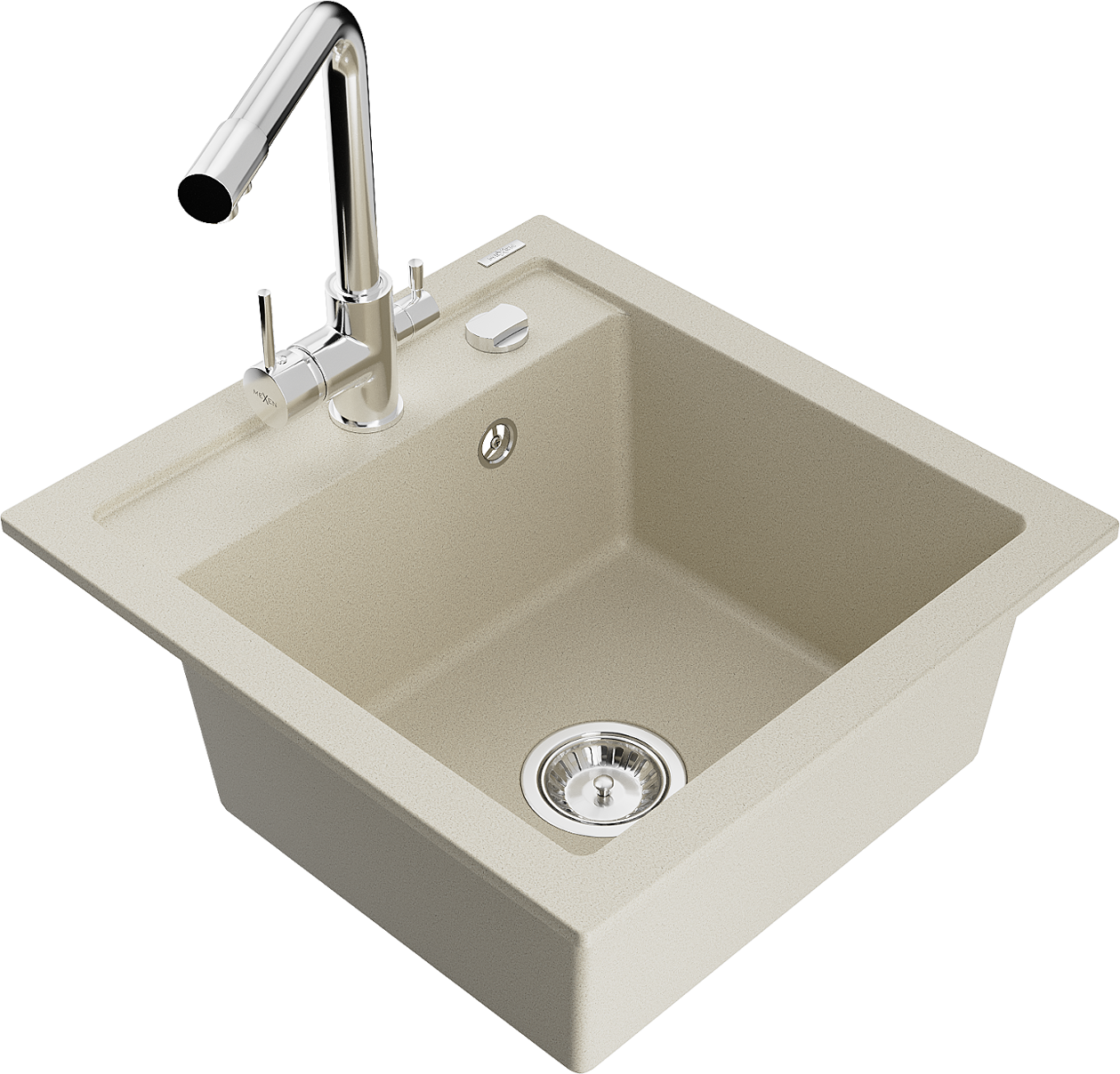 Mexen Vito granitinis virtuvės kriauklė su viena kamera ir Duero virtuvės maišytuvu, smėlinė - 6503-69-671600-00