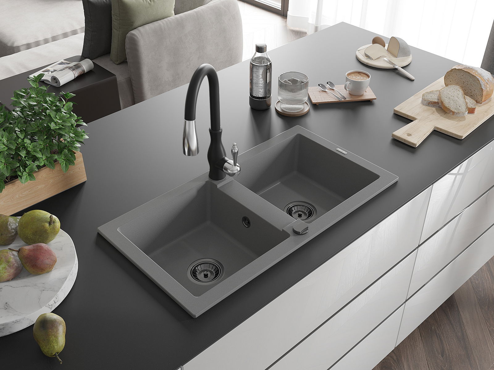 Kriauklės paviršius yra atsparūs dėmėms ir spalvos pasikeitimui, dėl kurio lengva valyti ir ilgą laiką išlaikyti savo spalvą. Estetinis ir praktiškai papildantis kiekvieną virtuvę.