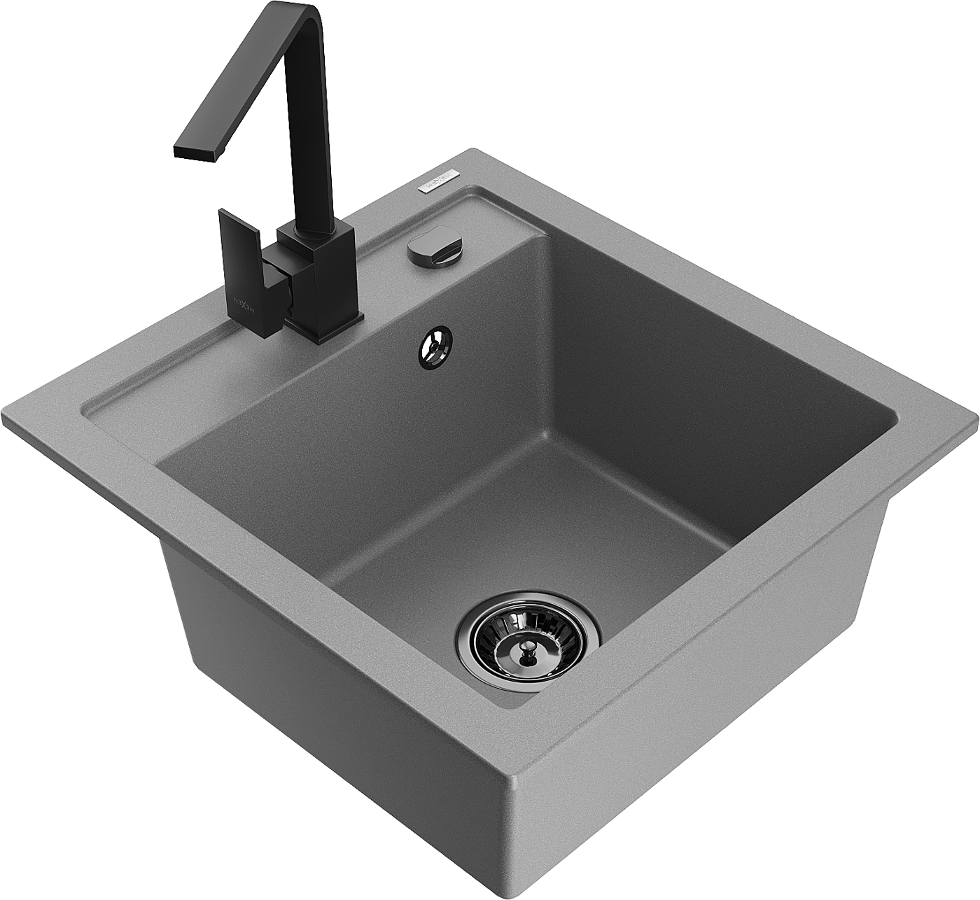 Mexen Vito granito plautuvė su viena dubeniu ir virtuviniu maišytuvu Rita, pilka - 6503-71-670300-70-B