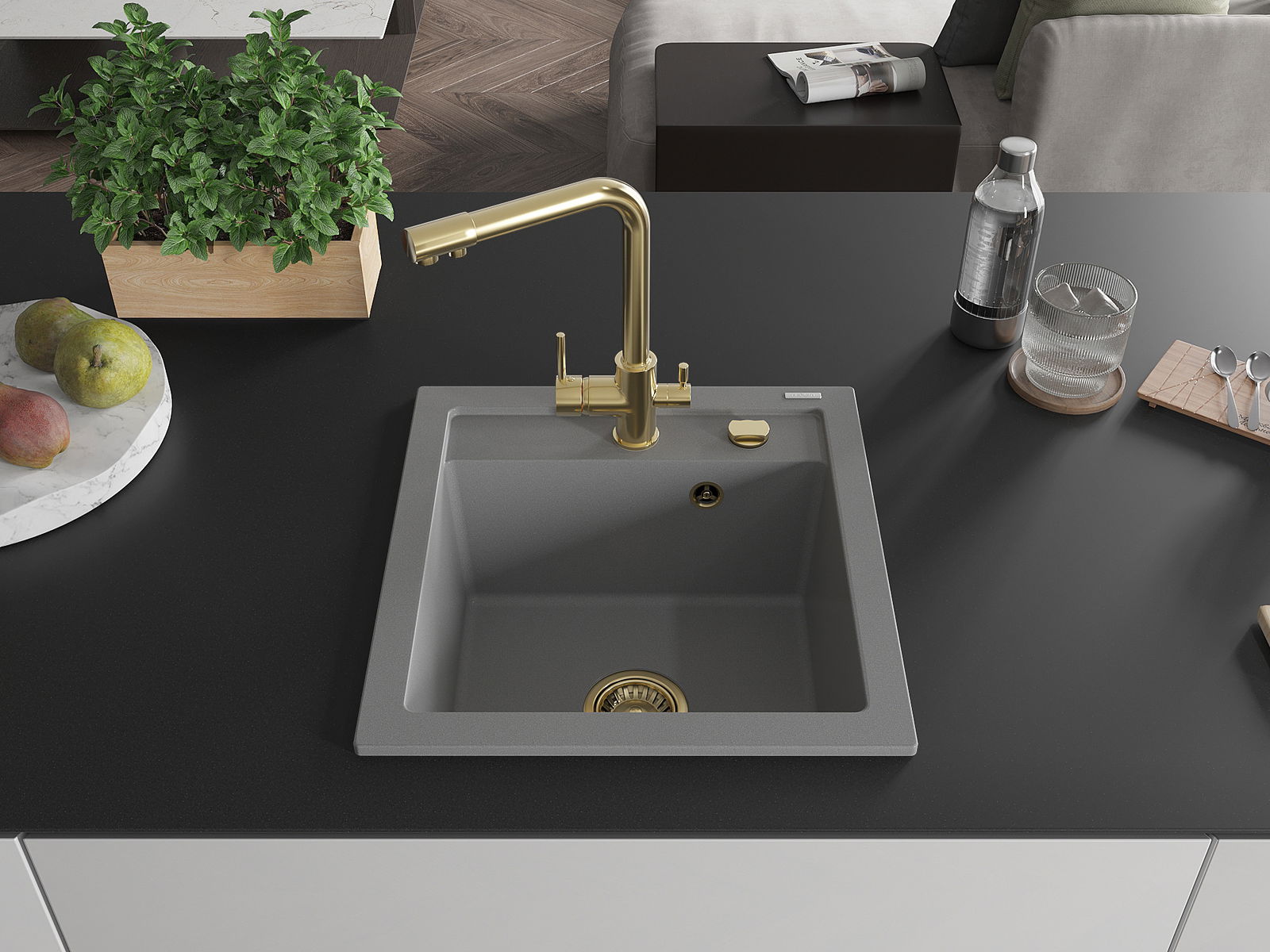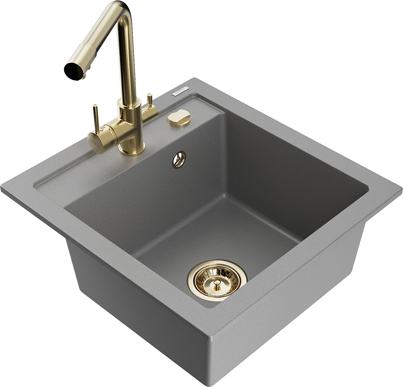 Mexen Vito granito virtuvės kriauklė su Duero maišytuvu, pilka - 6503-71-671600-50