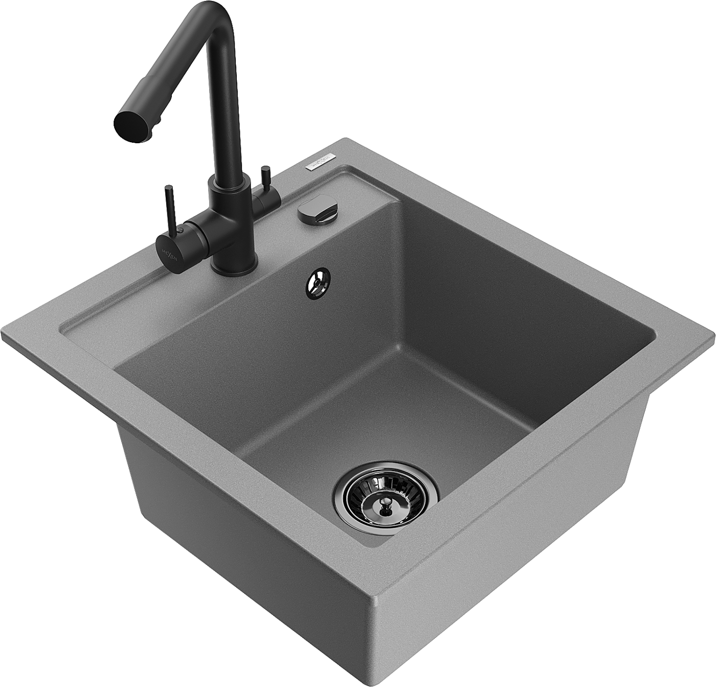 Mexen Vito vienos plautuvės granito kriauklė su Duero virtuvės maišytuvu, pilka - 6503-71-671600-70-B