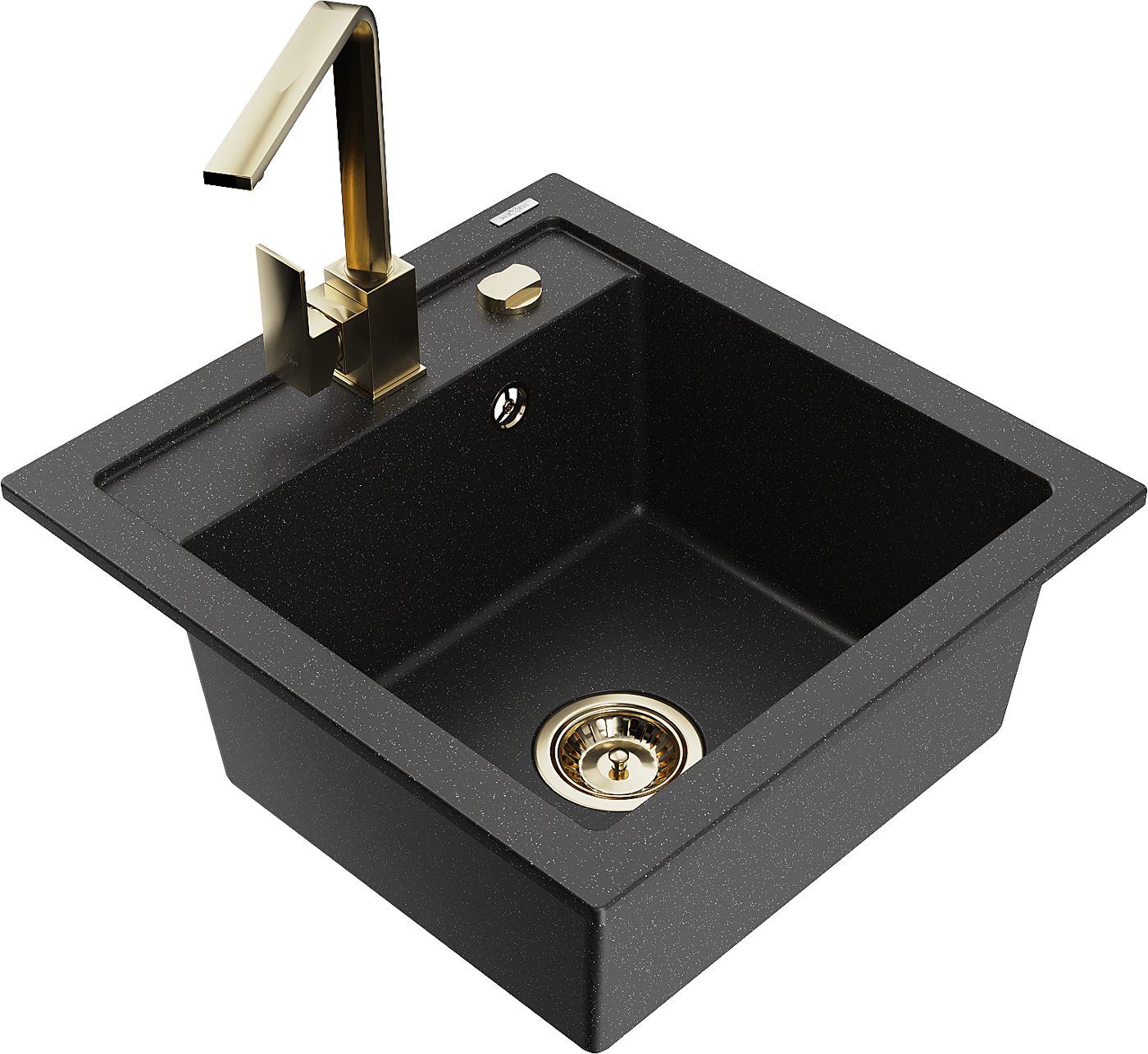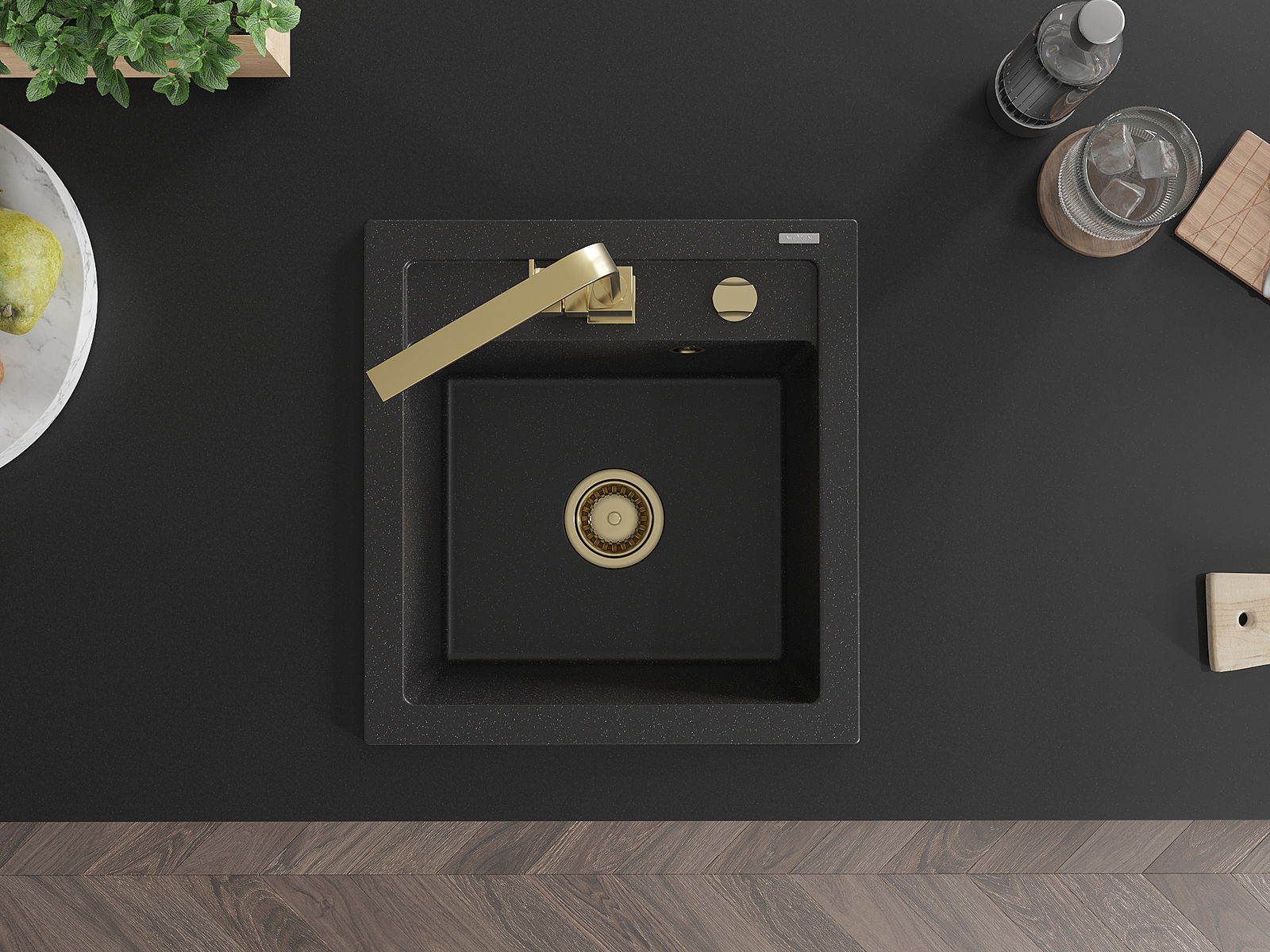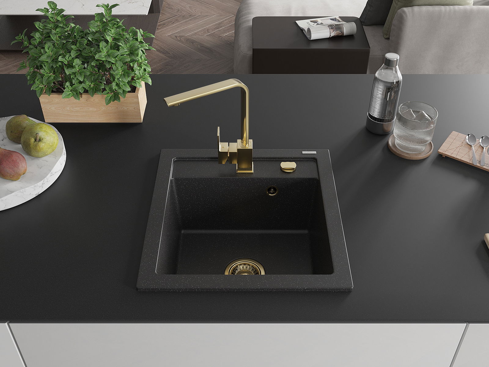 Mexen Vito granitinis vienos sekcijos plautuvė su virtuviniu maišytuvu Rita, juodas/sidabrinis metalikas - 6503-73-670300-50