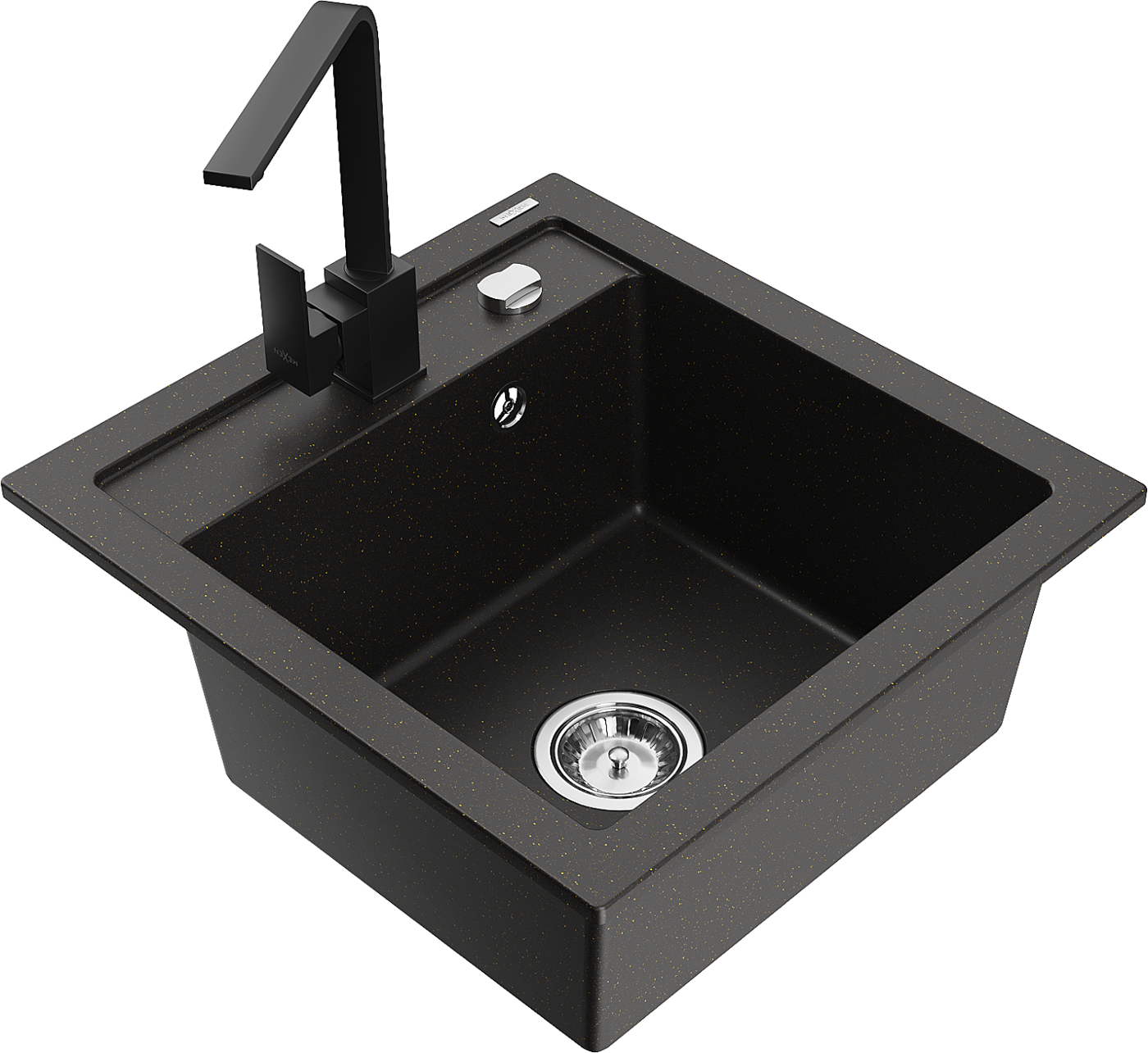 Mexen Vito granitinė vienos kameros plautuvė su virtuviniu maišytuvu Rita, juoda/auksinis metalikas - 6503-75-670300-70