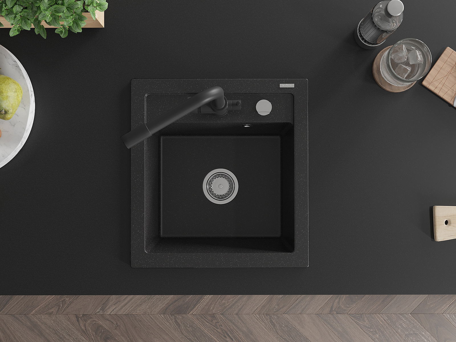 Mexen Vito vienos sekcijos granitinė plautuvė su Duero virtuviniu maišytuvu, juoda/sidabrinis metalikas - 6503-73-671600-70
