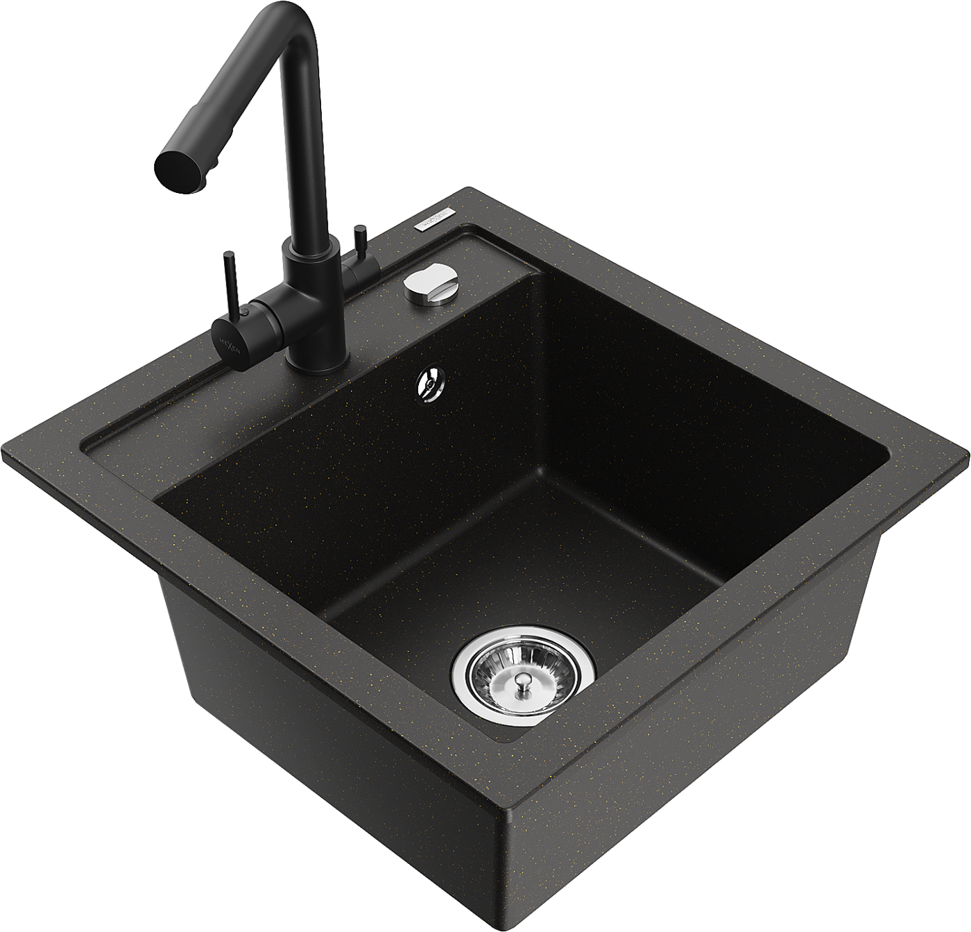 Mexen Vito vienos kameros granito plautuvė su Duero virtuvės maišytuvu, juoda/aukso metalo spalva - 6503-75-671600-70