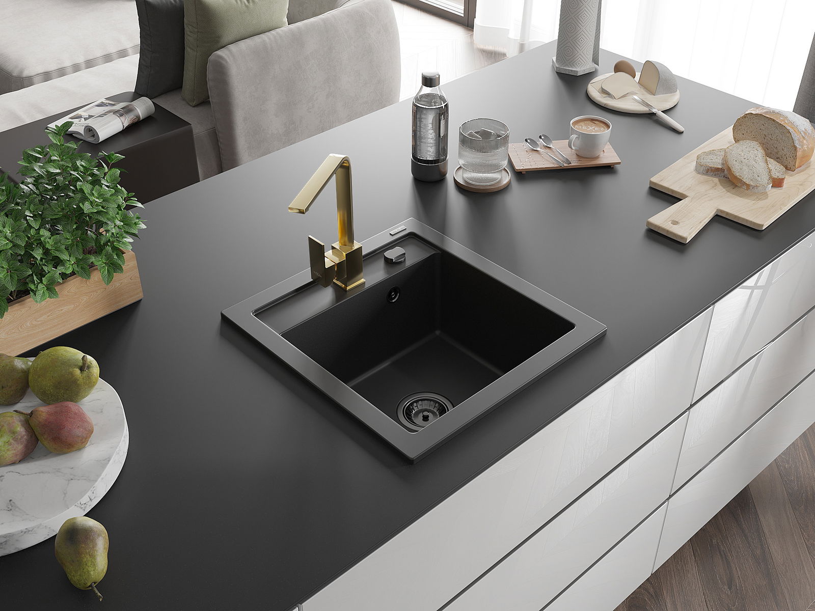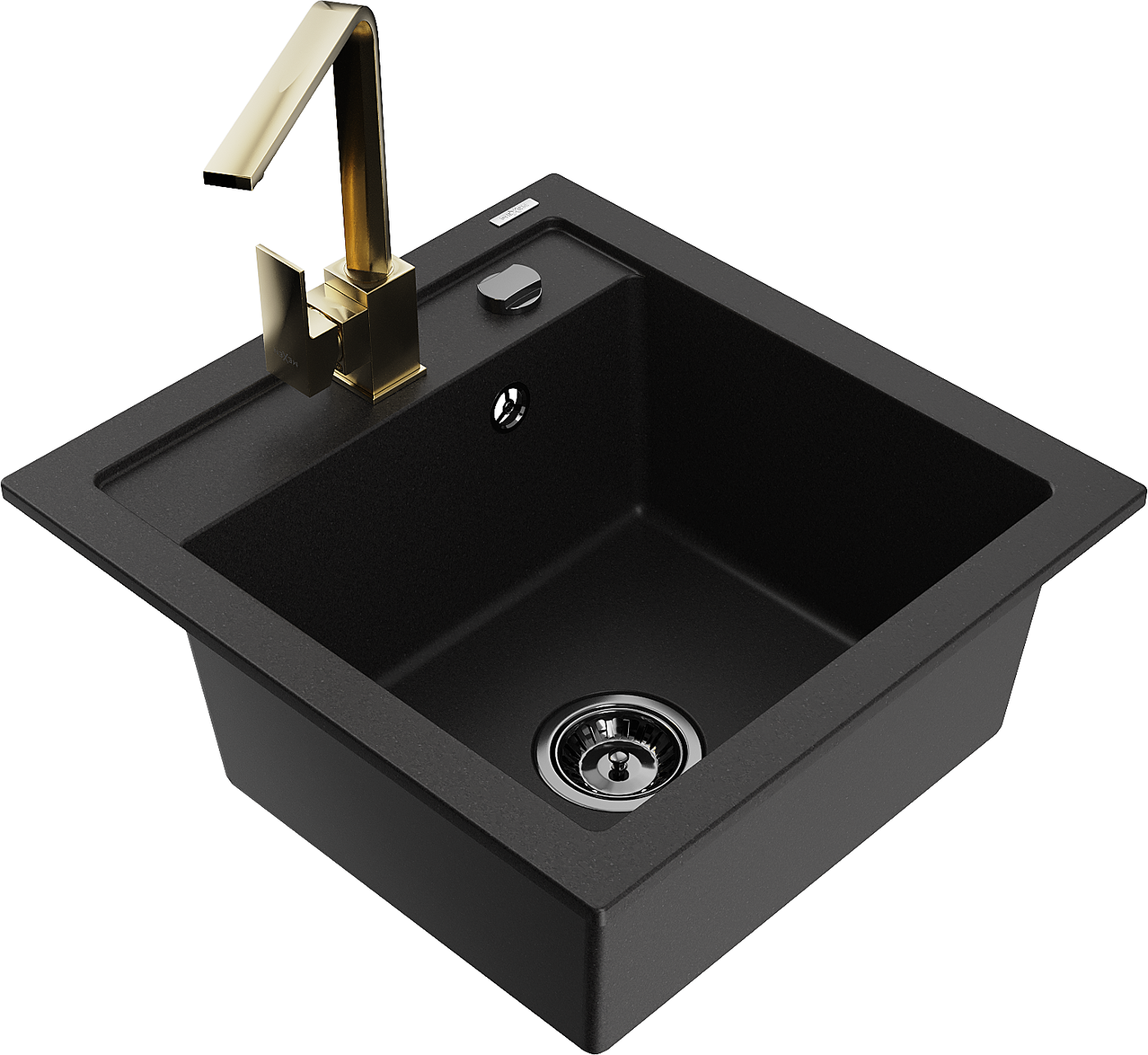 Mexen Vito granito plautuvė su vienu skyriumi ir virtuviniu maišytuvu Rita, juoda - 6503-77-670300-50-B
